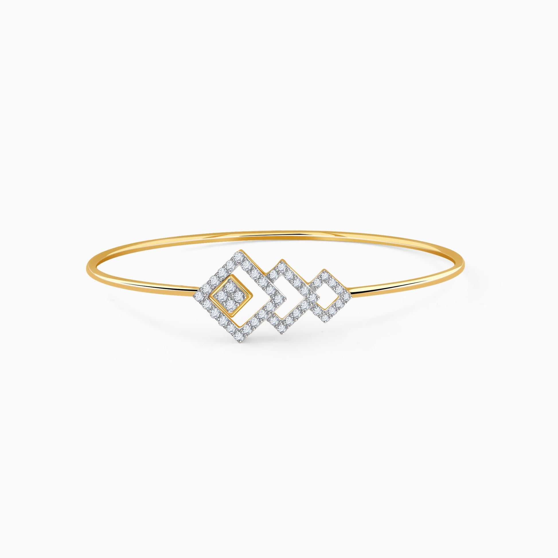 This pure gold bracelet for women features a three-interlocking rhombus design set with lab grown diamonds.
