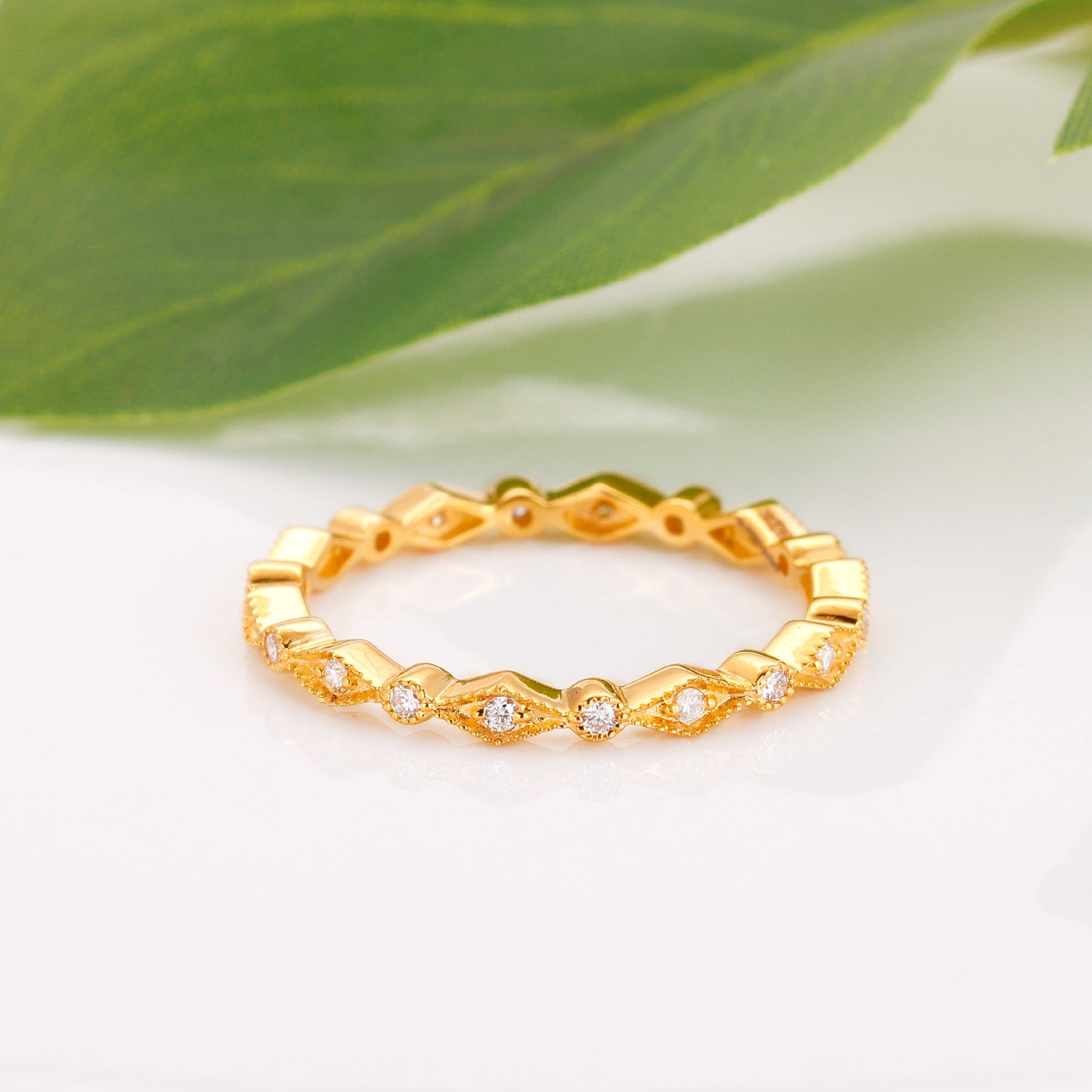 This gold ring has a zigzag geometric design studded beautifully with lab-grown diamonds.