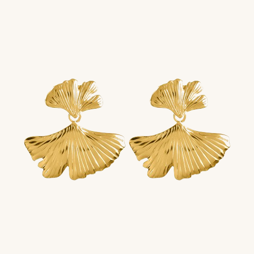 Gold Leaf Drop Earrings showcase a graceful, nature-inspired design with intricately detailed golden leaves. These elegant earrings add a touch of sophistication and organic beauty to any outfit, perfect for both day and evening wear.