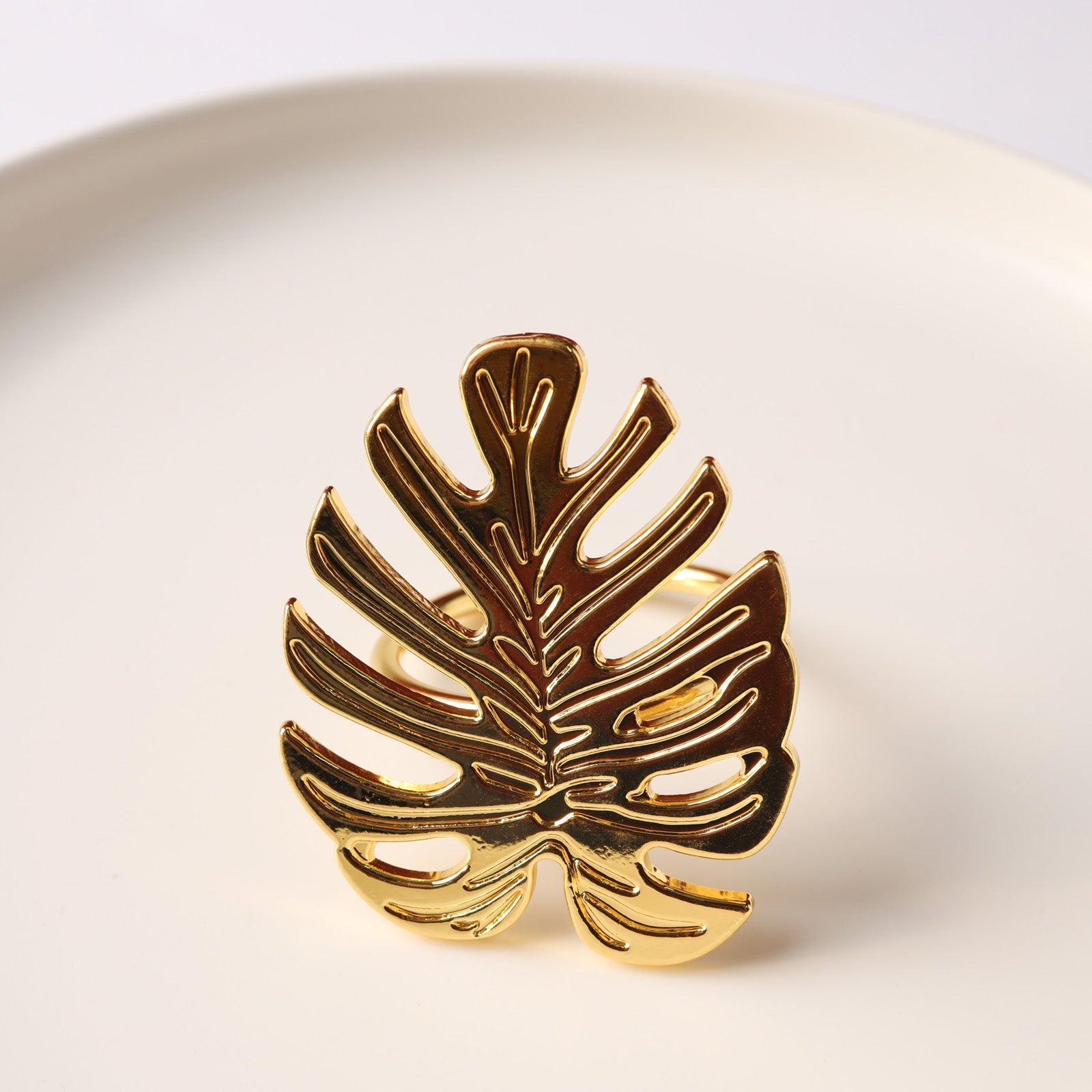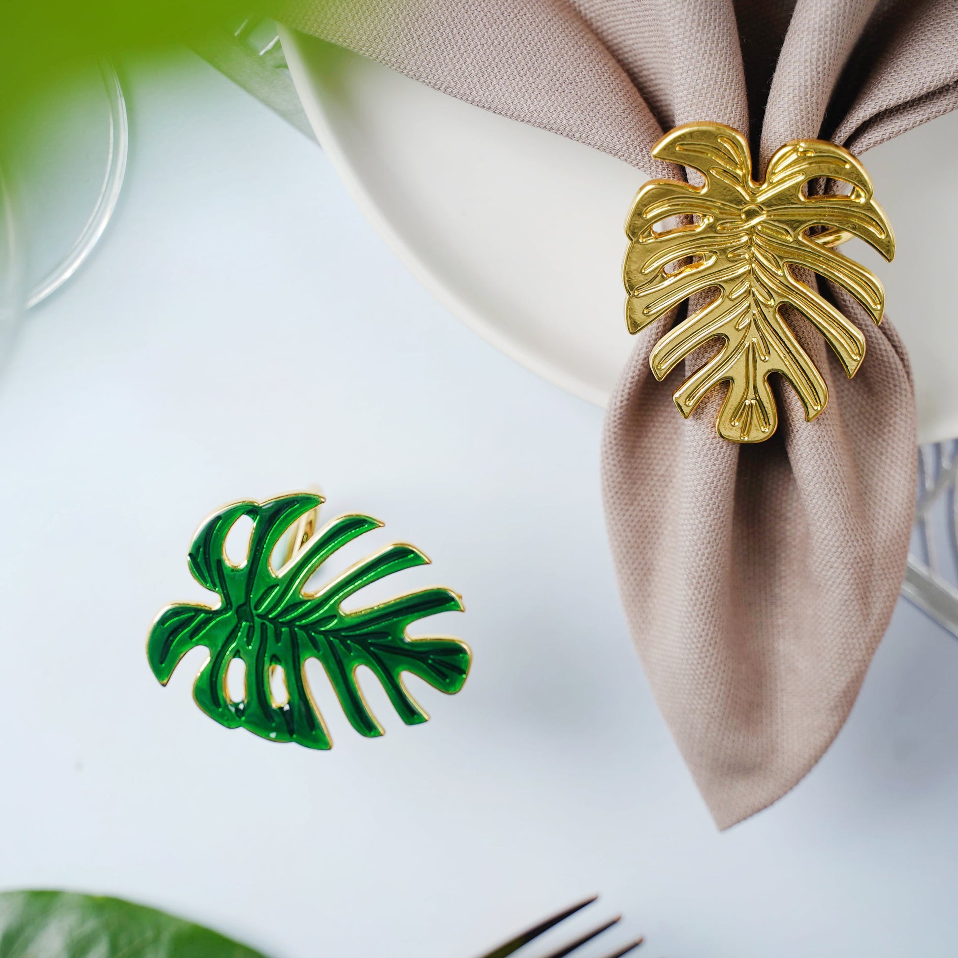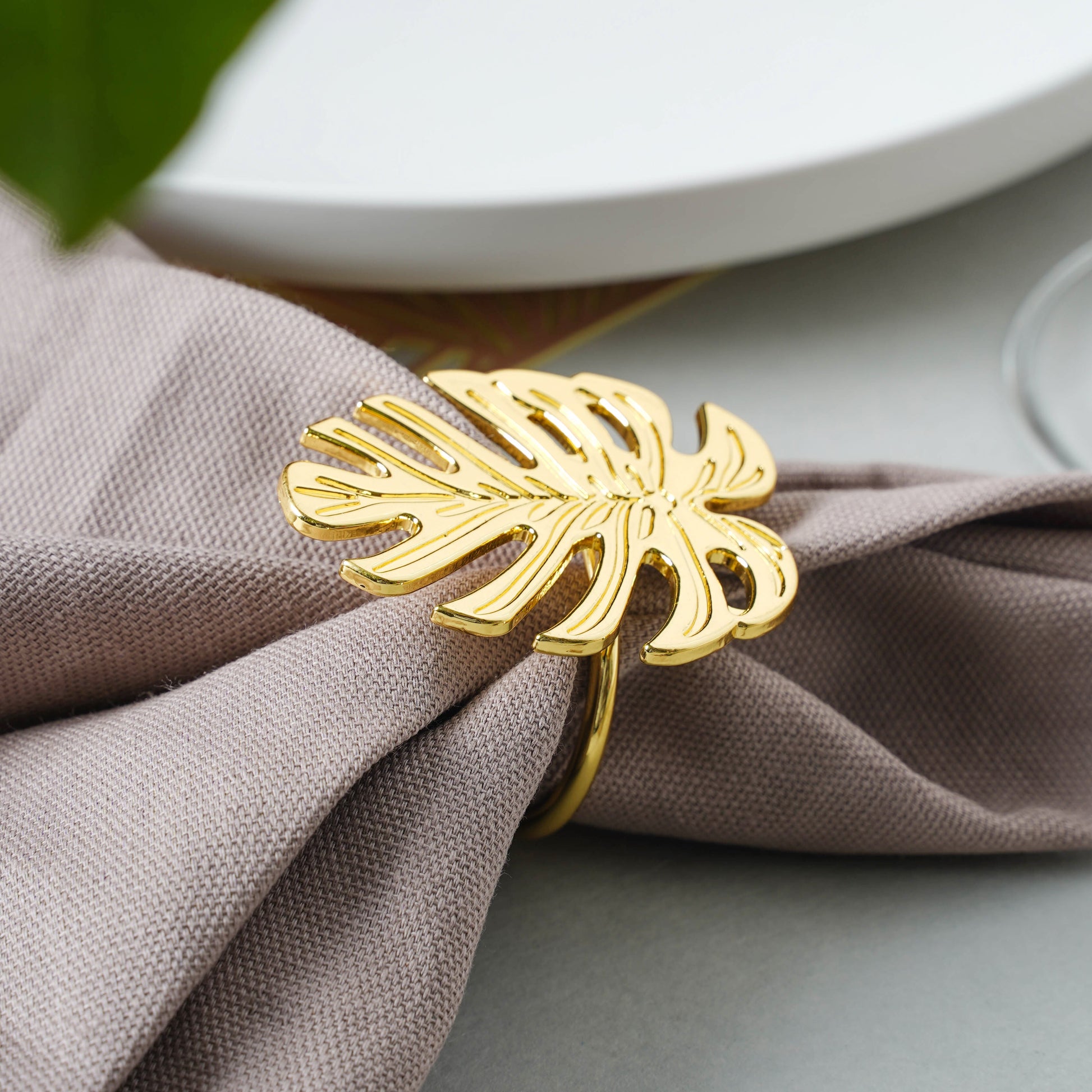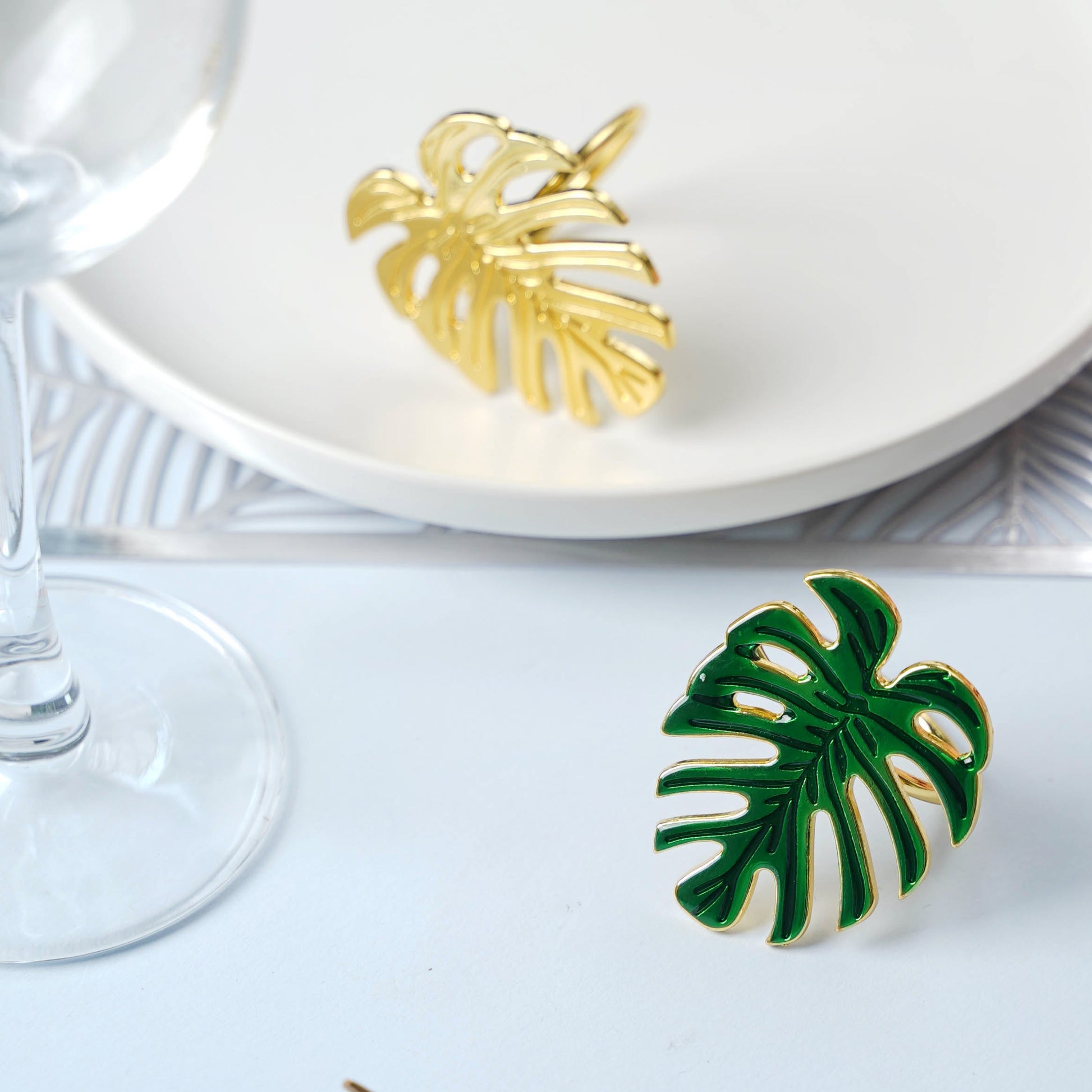 The napkin ring is presented in the form of a golden monstera leaf. Available in two stunning shades, the metal napkin ring is a stunning addition to an otherwise simple table setting. The cloth napkin ring is ideal for both formal and informal settings. The dinner napkin rings are strong and durable, and they may be used with both linen and disposable paper towels. The gold napkin ring is simply beautiful for a vintage-themed sophisticated décor.