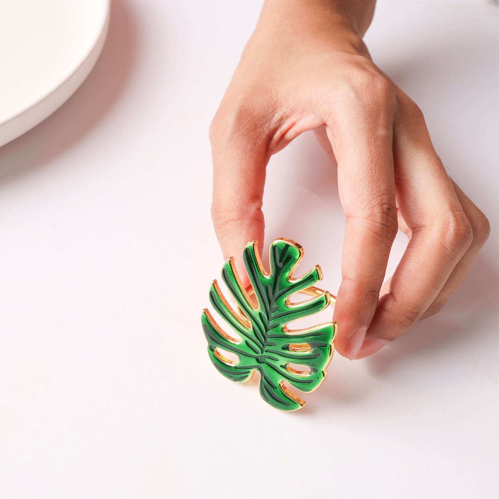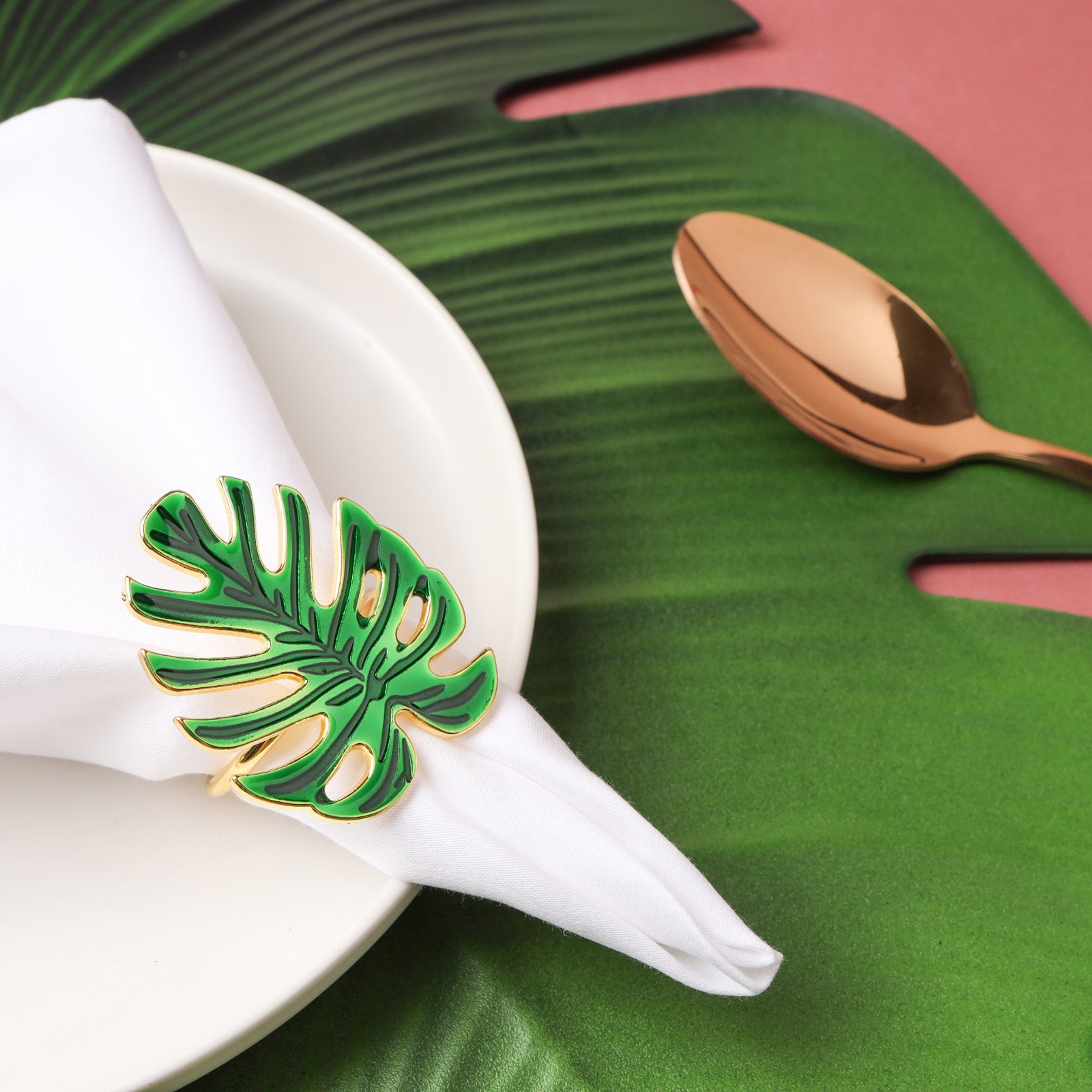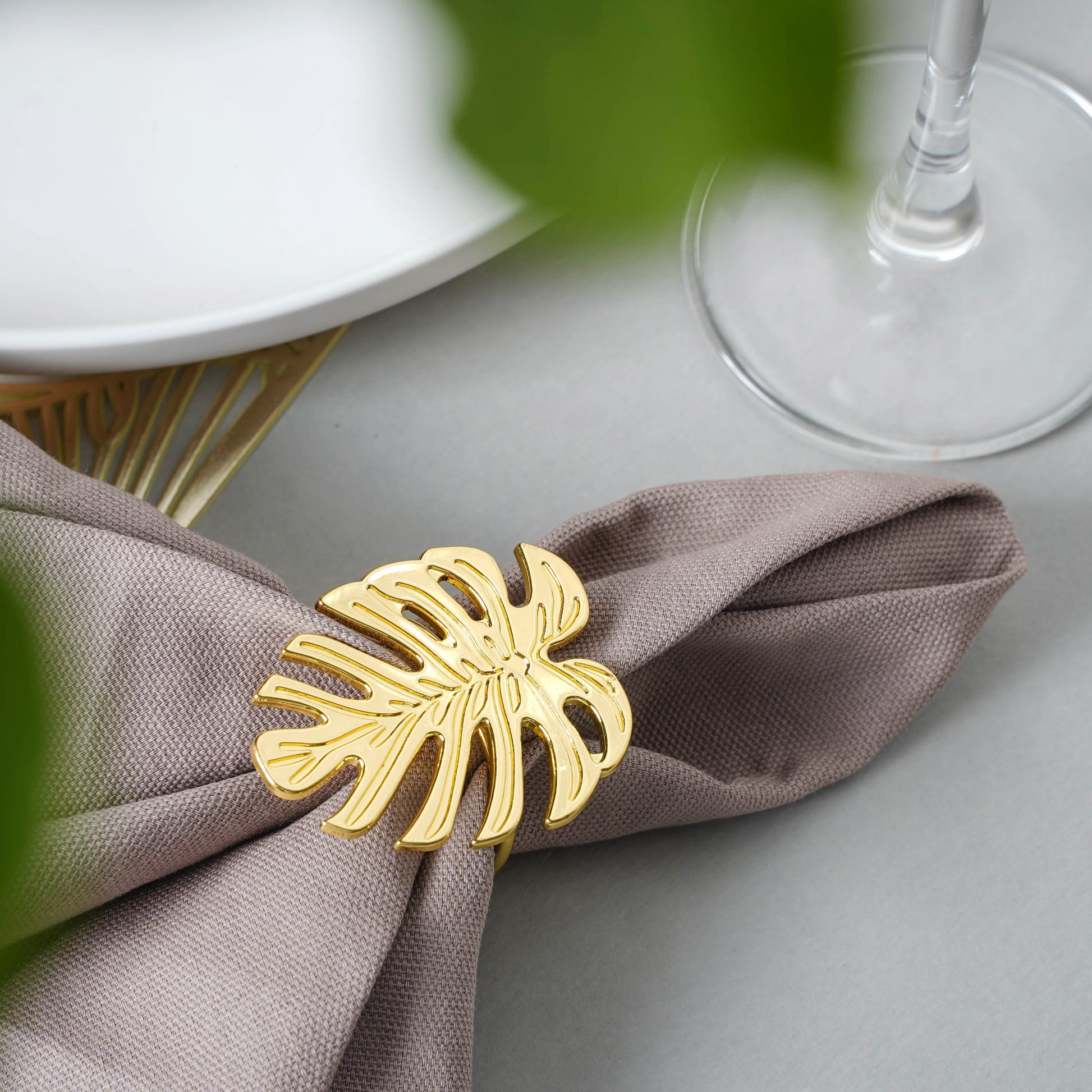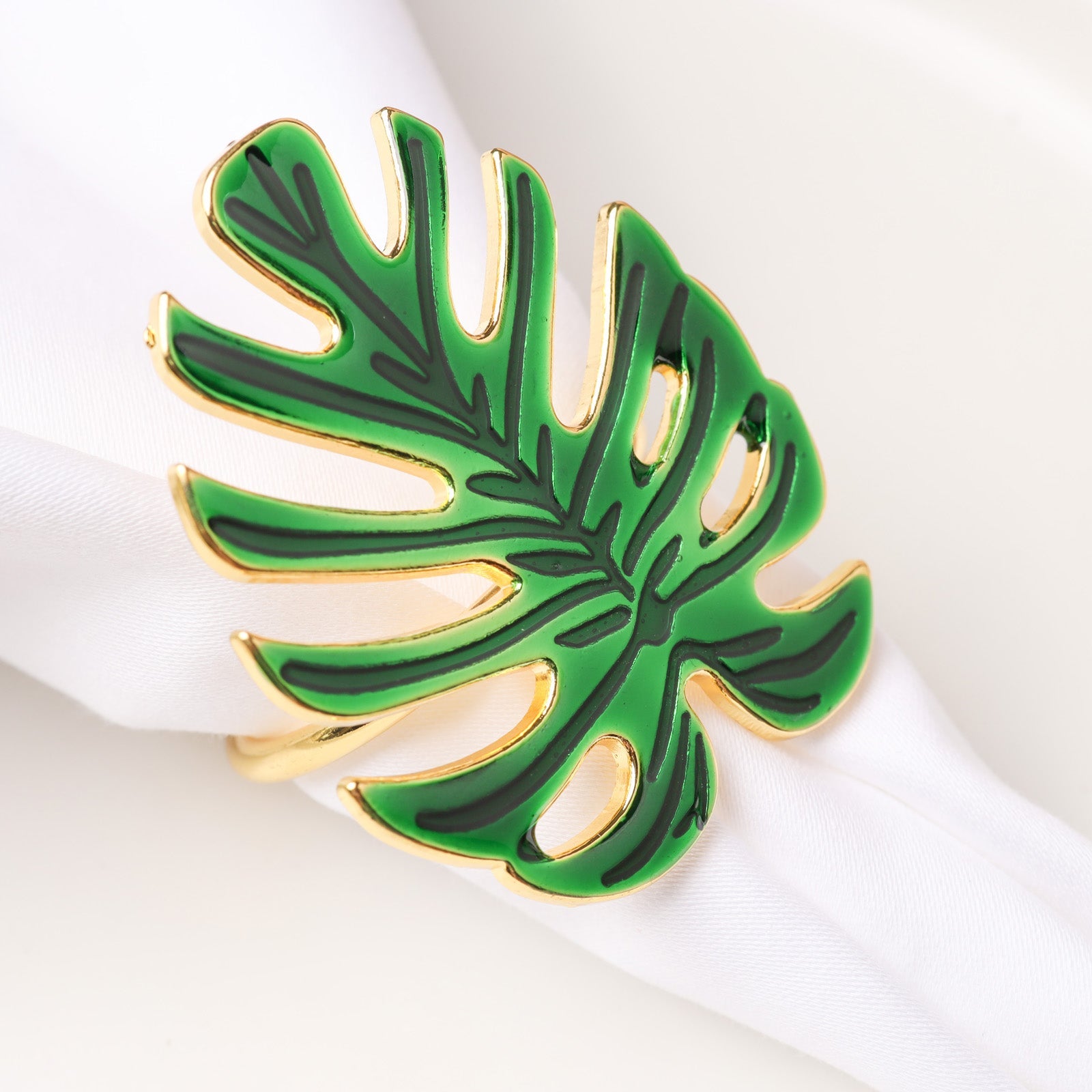 The napkin ring is presented in the form of a golden monstera leaf. Available in two stunning shades, the metal napkin ring is a stunning addition to an otherwise simple table setting. The cloth napkin ring is ideal for both formal and informal settings. The dinner napkin rings are strong and durable, and they may be used with both linen and disposable paper towels. The gold napkin ring is simply beautiful for a vintage-themed sophisticated décor.