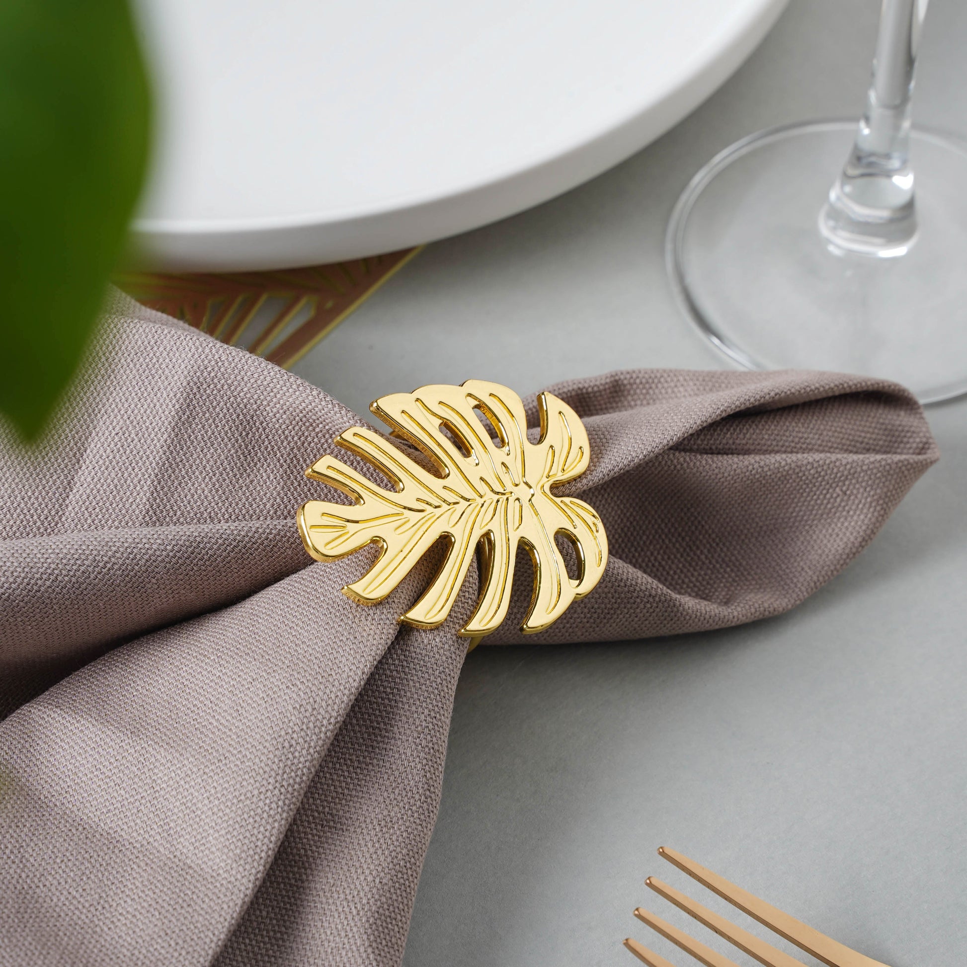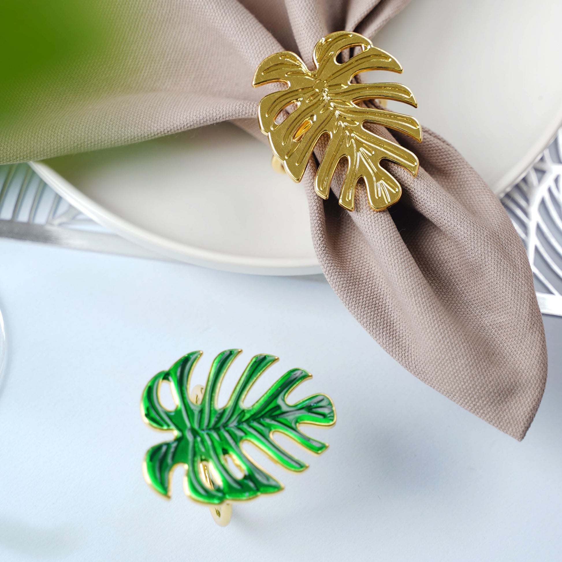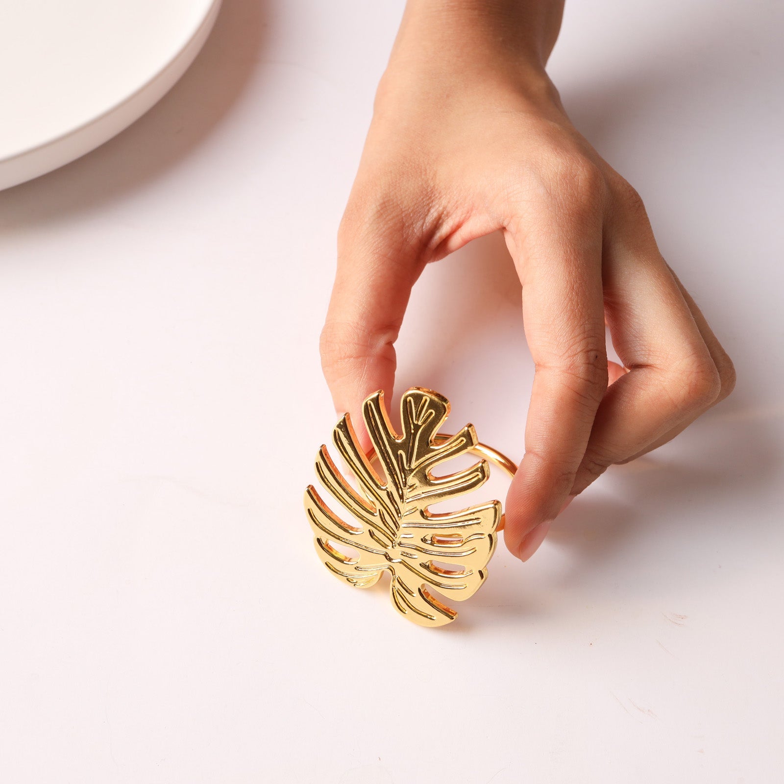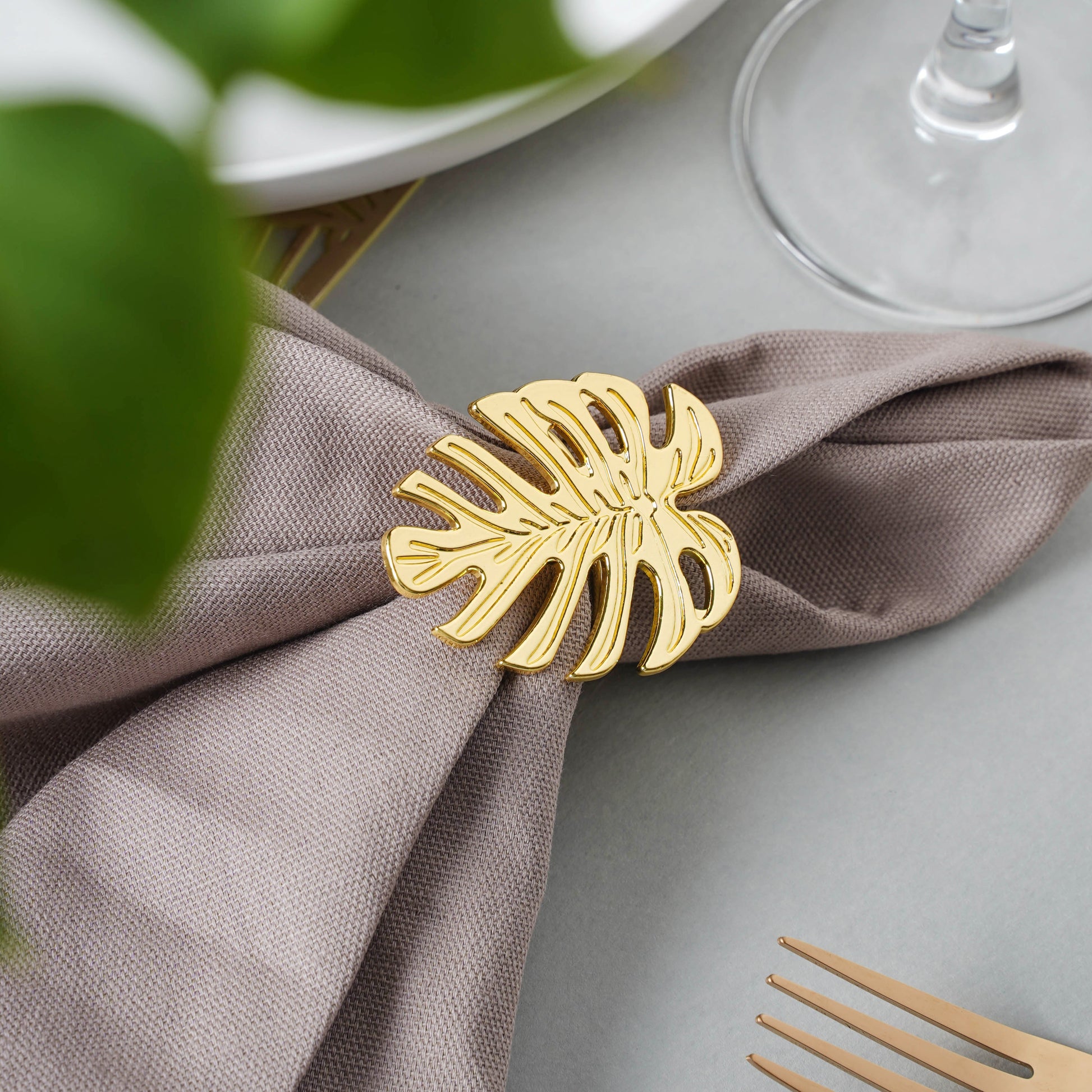 The napkin ring is presented in the form of a golden monstera leaf. Available in two stunning shades, the metal napkin ring is a stunning addition to an otherwise simple table setting. The cloth napkin ring is ideal for both formal and informal settings. The dinner napkin rings are strong and durable, and they may be used with both linen and disposable paper towels. The gold napkin ring is simply beautiful for a vintage-themed sophisticated décor.
