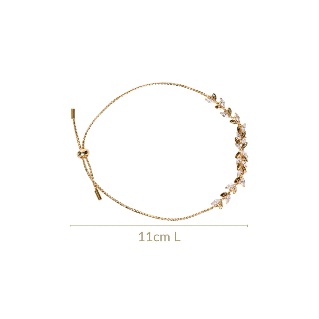 Inspired by nature’s effortless beauty, this bracelet blends elegance with modern versatility. The delicate gold metal chain features a stunning leaf duo. One is adorned with shimmering stones that catch the light with an iridescent glow, while the other showcases a sleek, gold-plated leaf for a bold yet refined contrast. Designed with a sliding knot arrangement, this bracelet offers an adjustable fit, making it perfect for layering or wearing solo as a statement of understated sophistication.