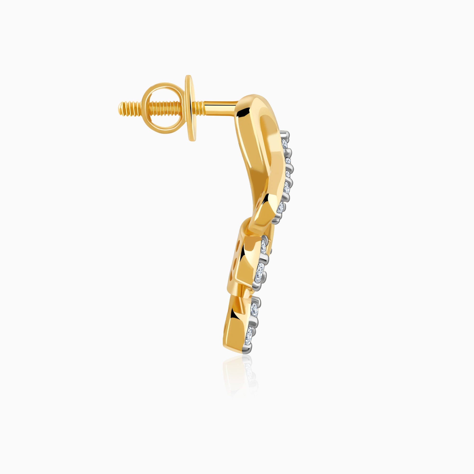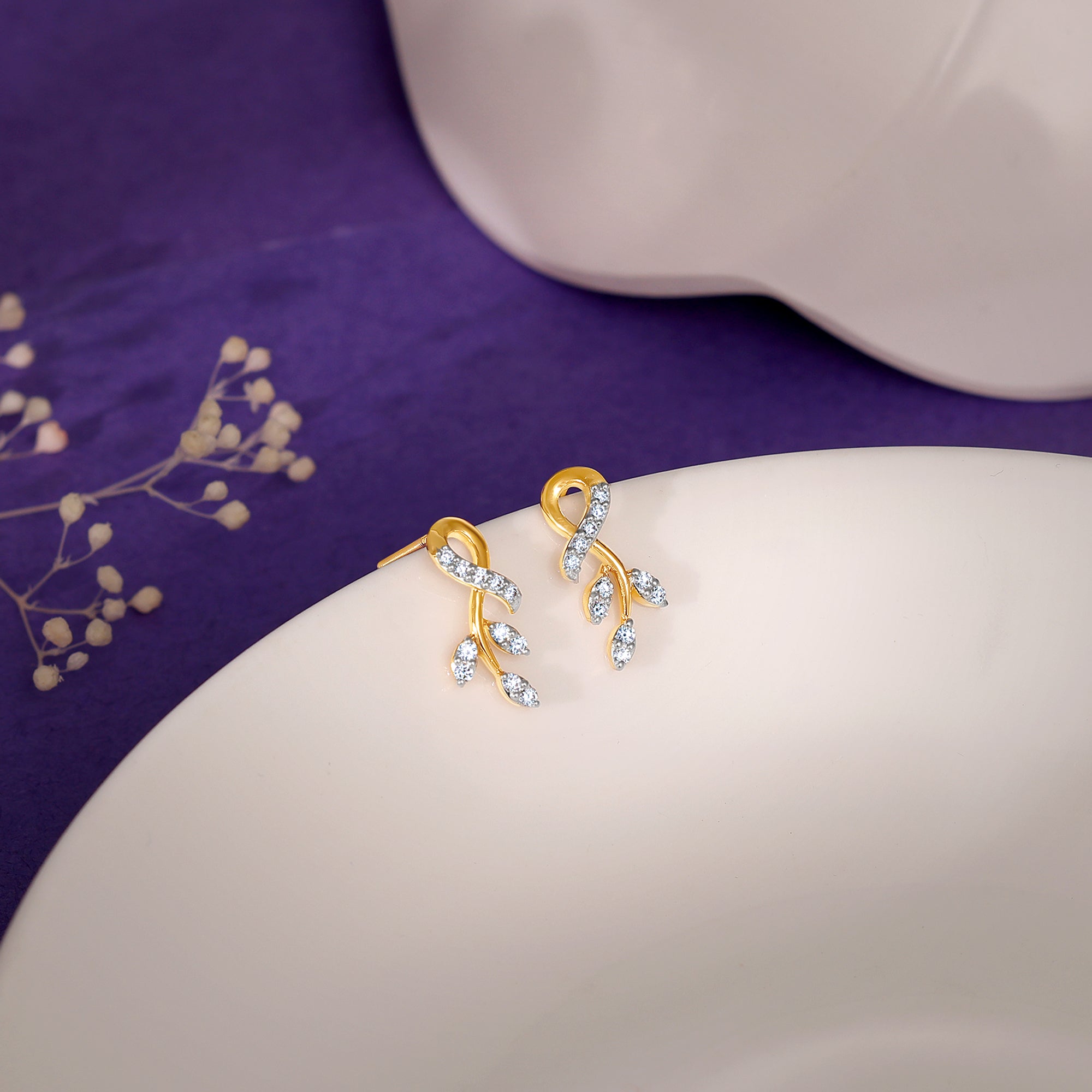 This pair of gold earrings features a twisted leafy motif, partially studded with lab-grown diamonds.