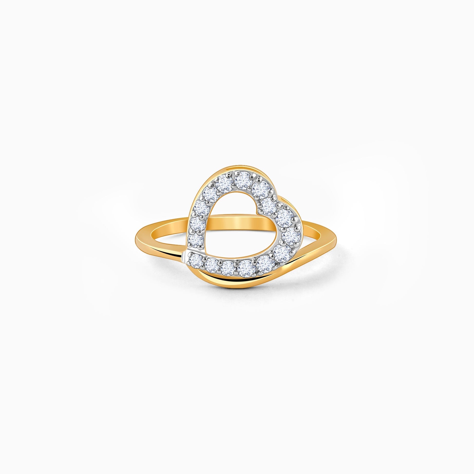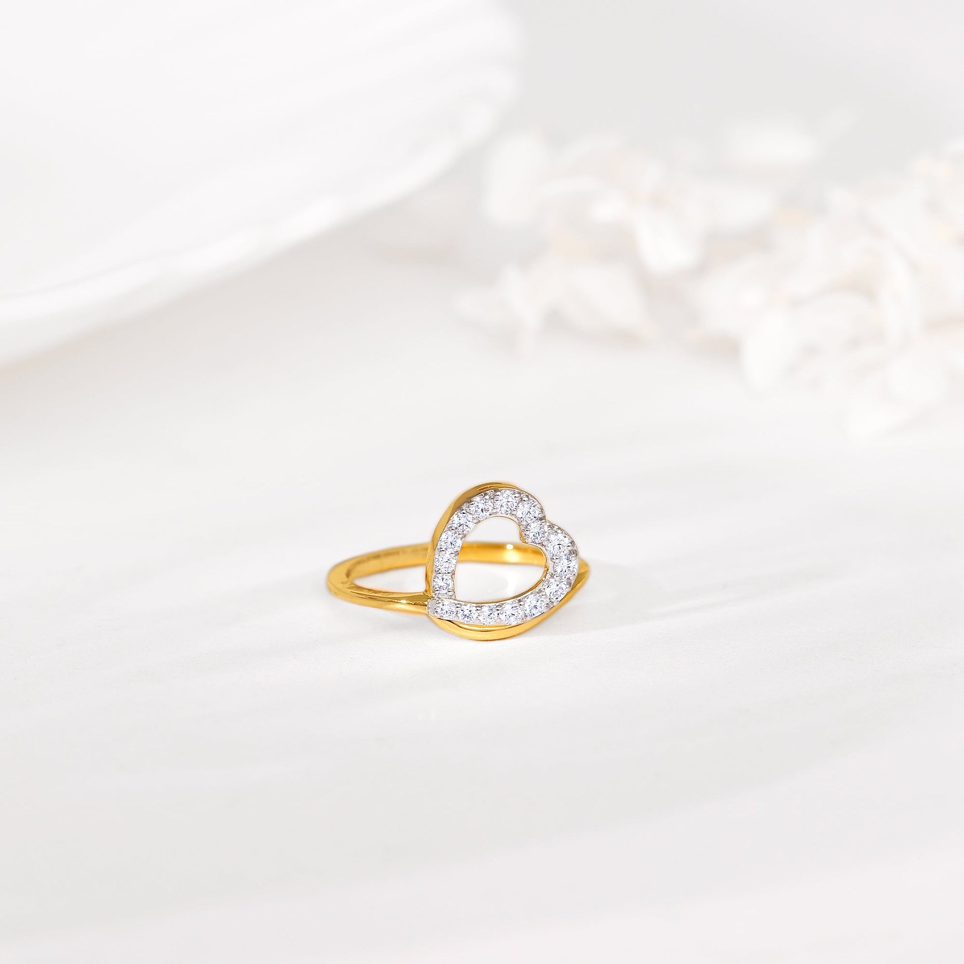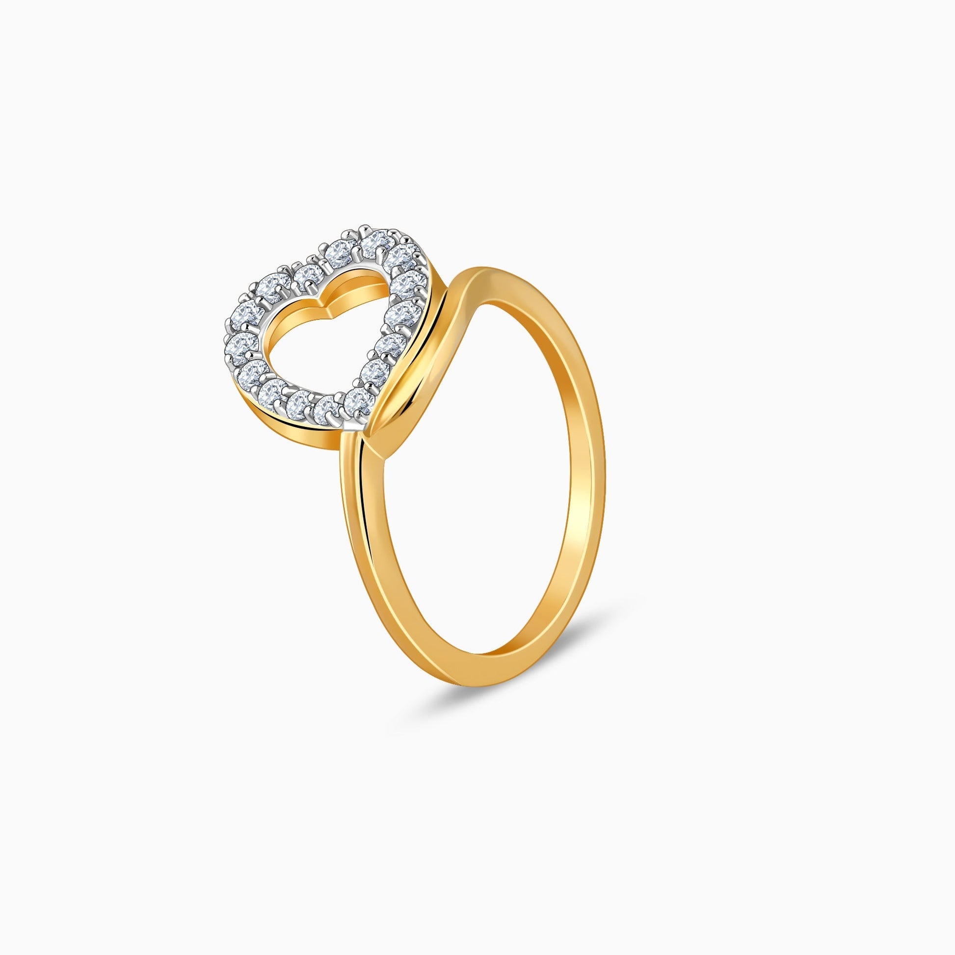 This pure gold ring for women features a tilted heart motif, studded with lab-grown diamonds.