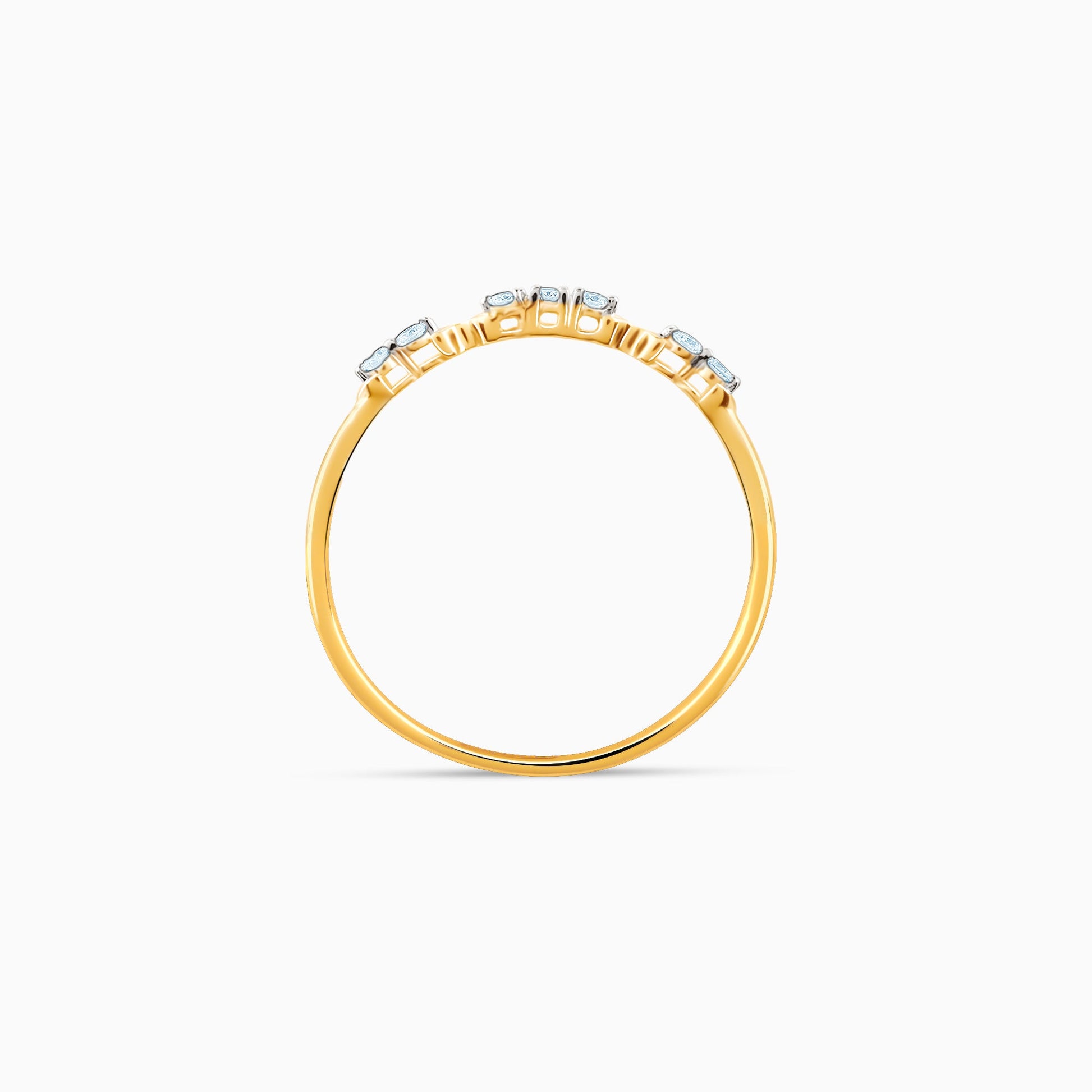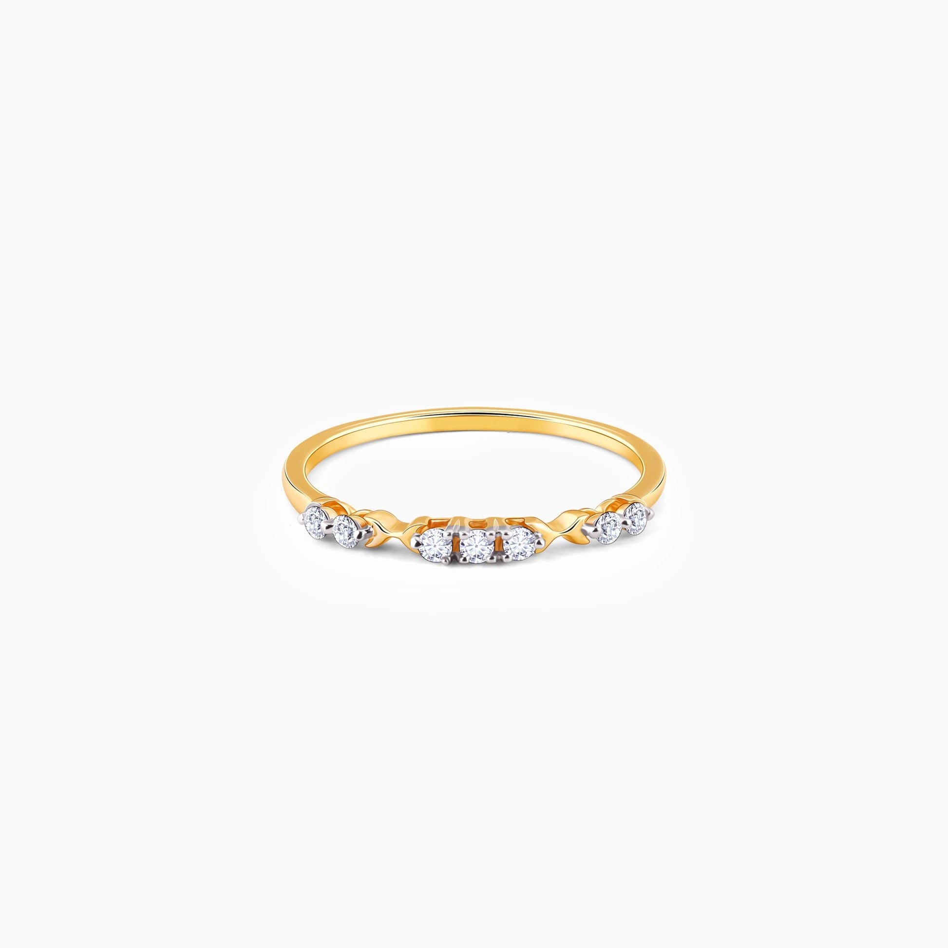 This gold ring features a line of lab-grown diamonds with X-shaped motifs in between.