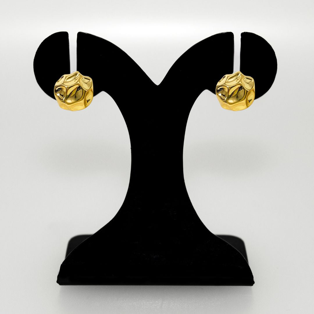 Embrace a touch of bold sophistication with these golden metal studs, featuring a beautifully textured, hammered finish that gives them an abstract, artistic allure. The uneven surface adds a dynamic, reflective quality, catching the light in a way that makes them truly stand out.