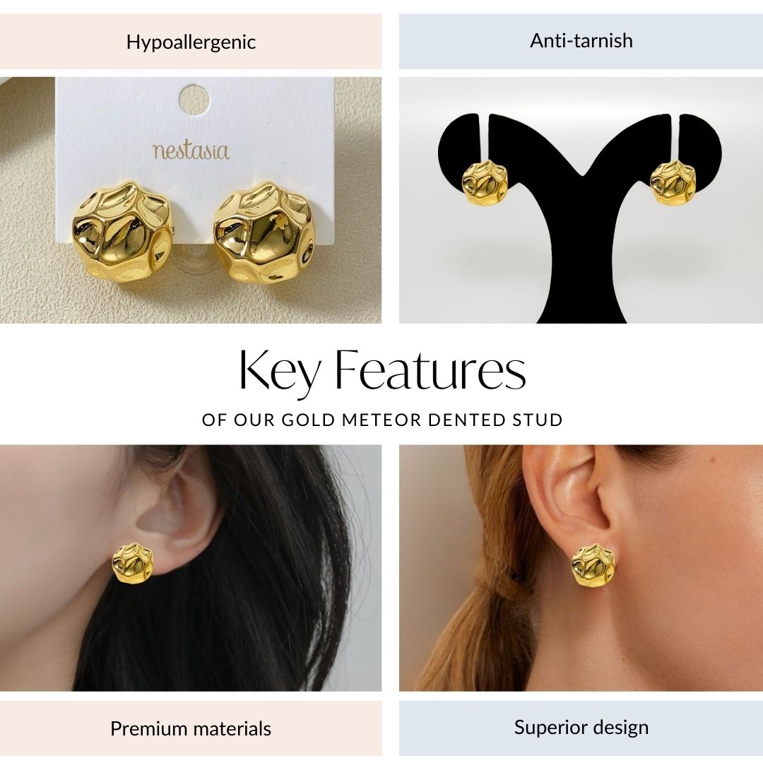Nestyle: Pair these golden hammered studs with a flowy silk blouse and tailored trousers for an effortlessly chic look.