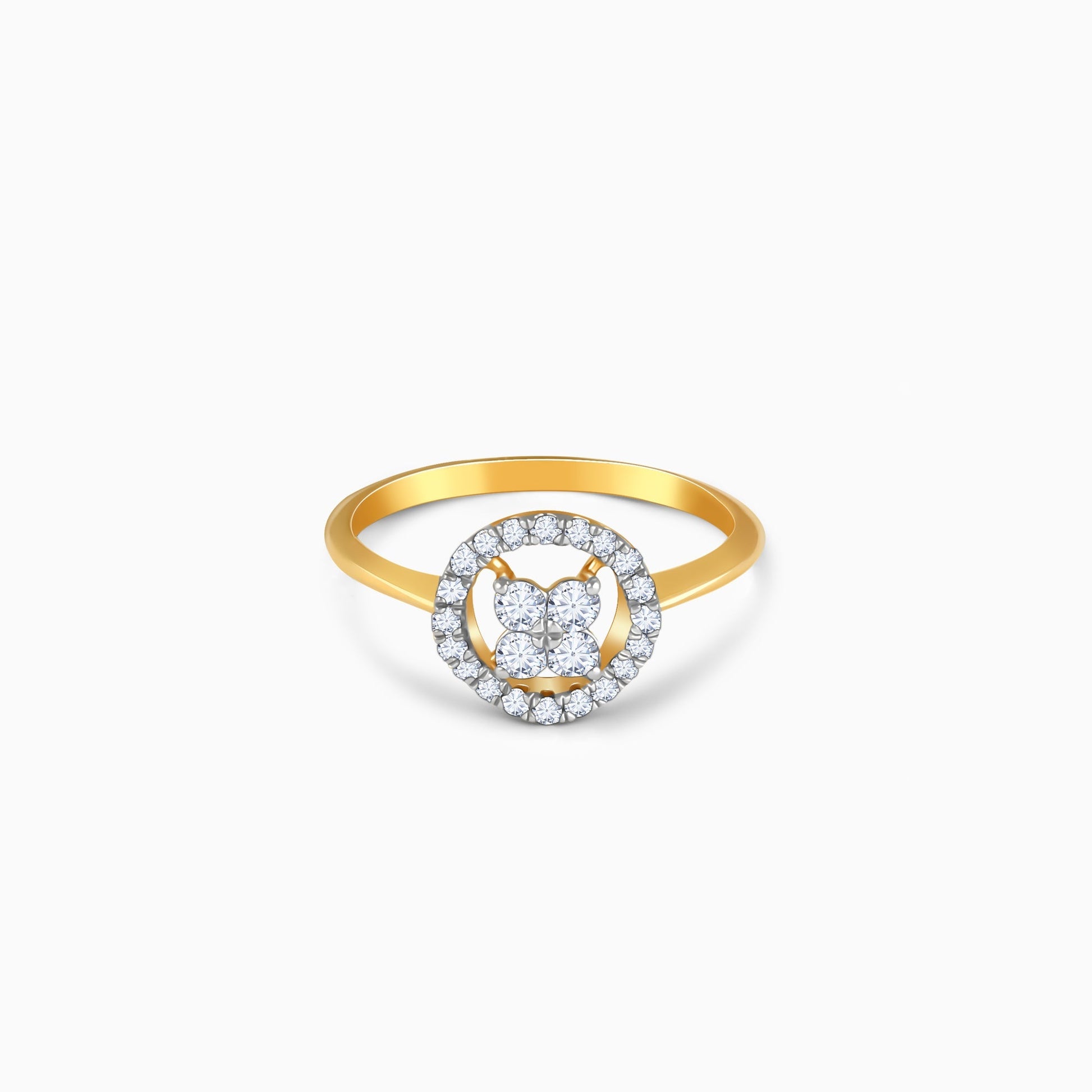This pure gold ring for women features a dazzling butterfly motif crafted from four lab grown diamonds. Also framed by a pavé-set circular halo adorned with lab diamonds.