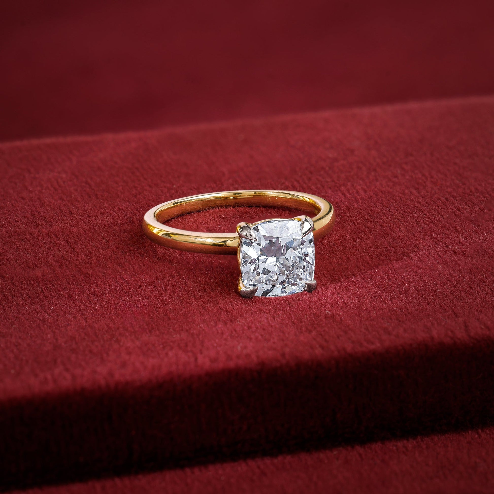 This gold ring champions a dazzling princess-cut diamond on a sleek gold band. Its sharp lines and brilliant facets capture light from every angle.