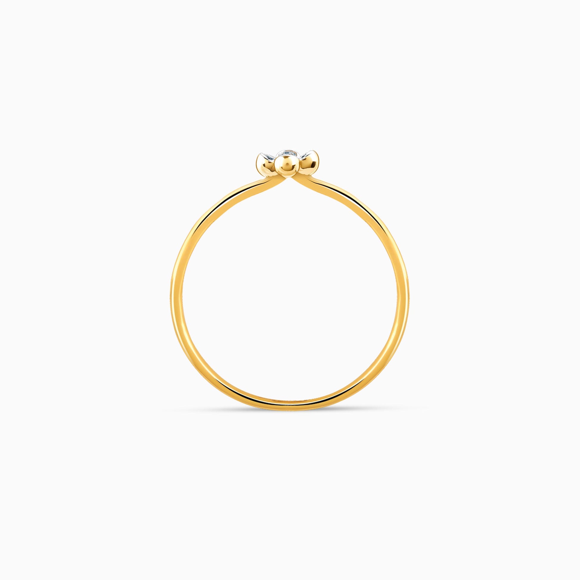 This gold ring features a flower motif with four petals studded with lab-grown diamonds.