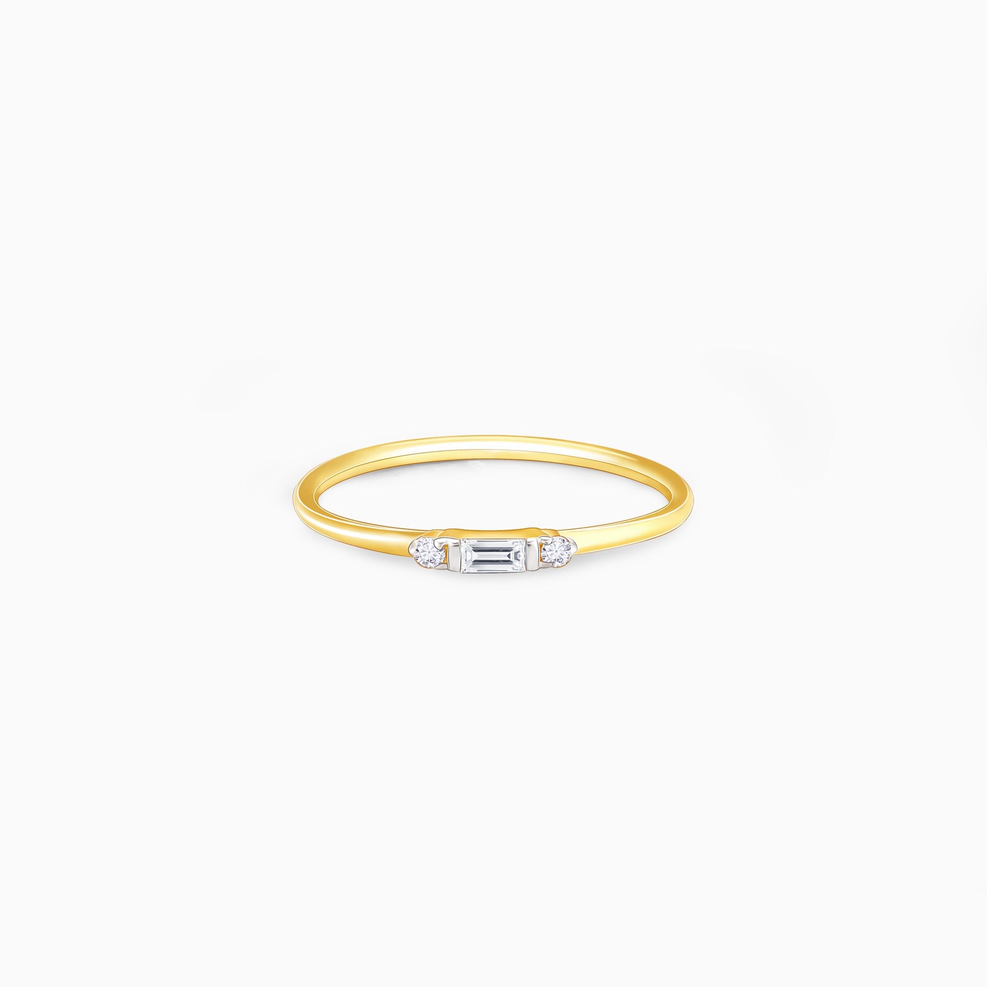 This gold ring has a rectangular shape lab-grown diamond placed at the centre along with two diamonds on both ends.