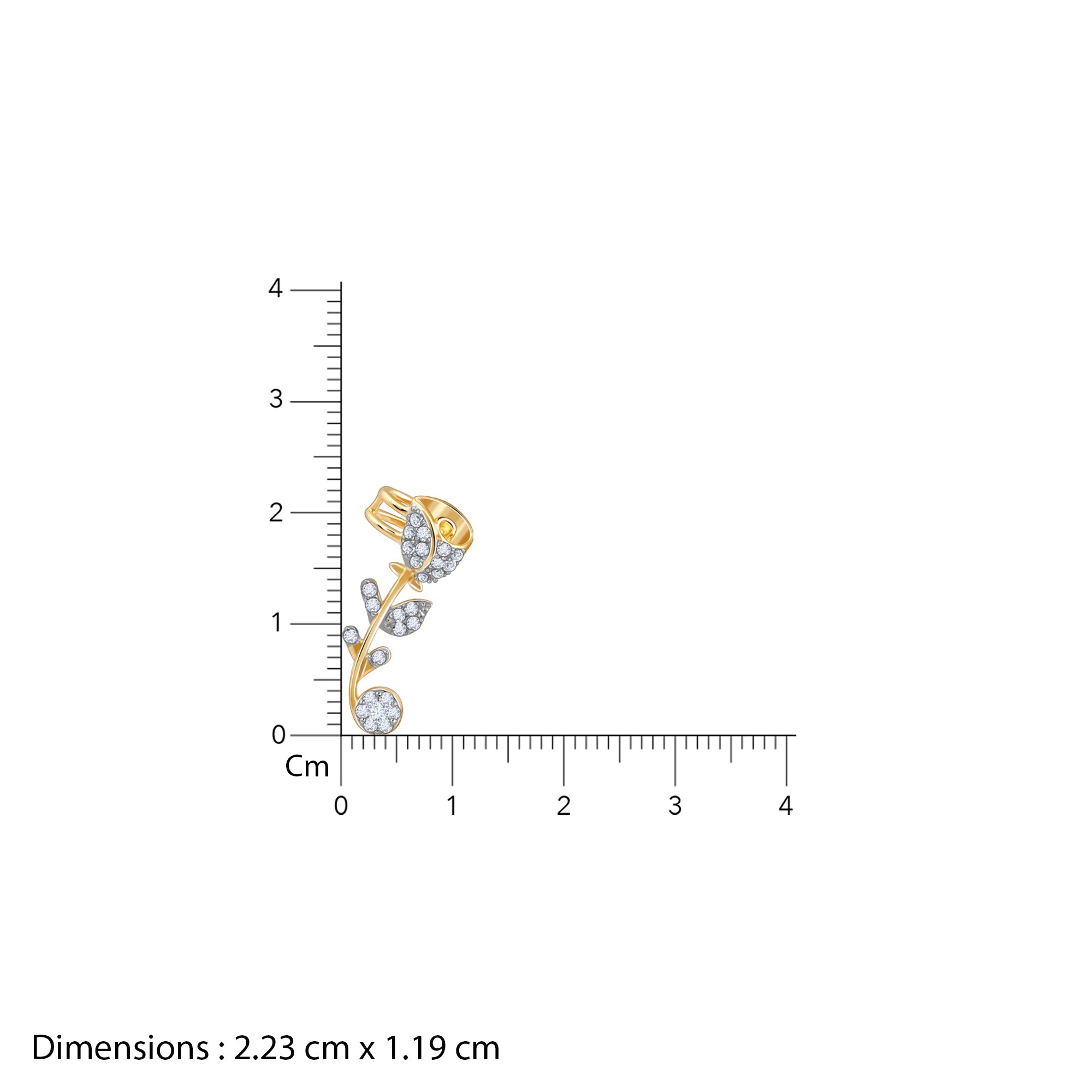 These womens pure gold earrings feature a rose motif, with petals studded with lab grown diamonds. It also extends to a stem with leaf motifs studded with lab diamonds. A circular cluster of lab diamonds further adds to this beauty.