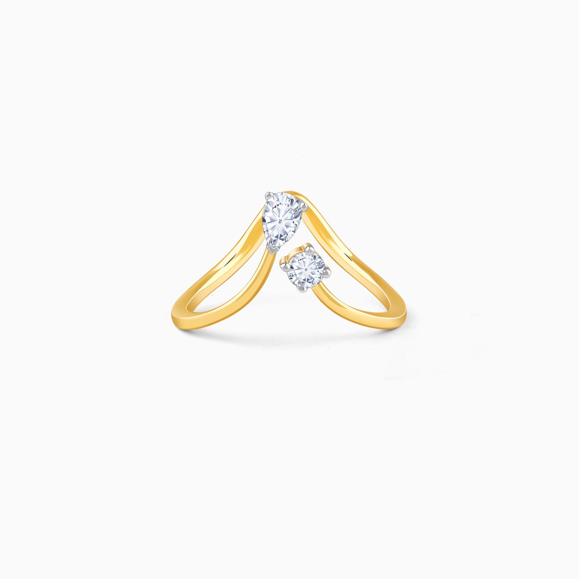 This gold ring for women features vanki design. At the centre, the ring showcases toi moi shape with pear and square-shaped lab grown diamonds.