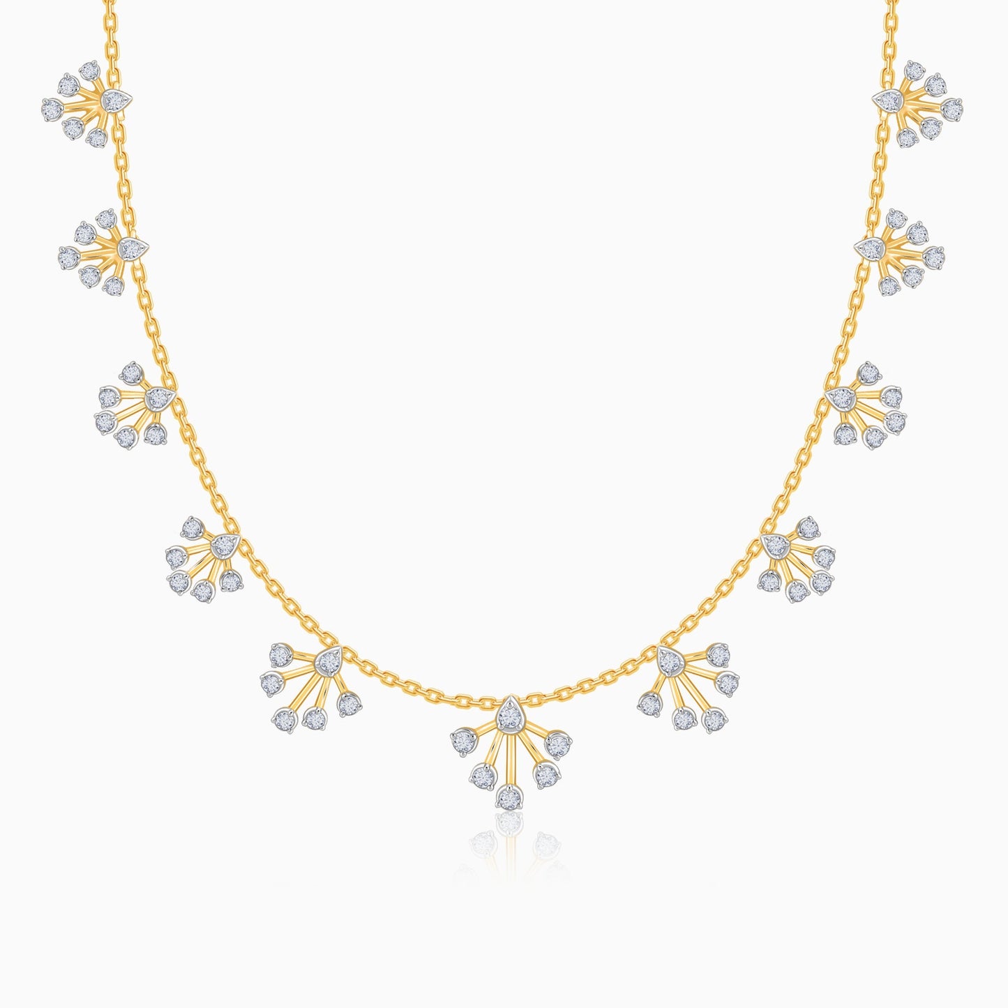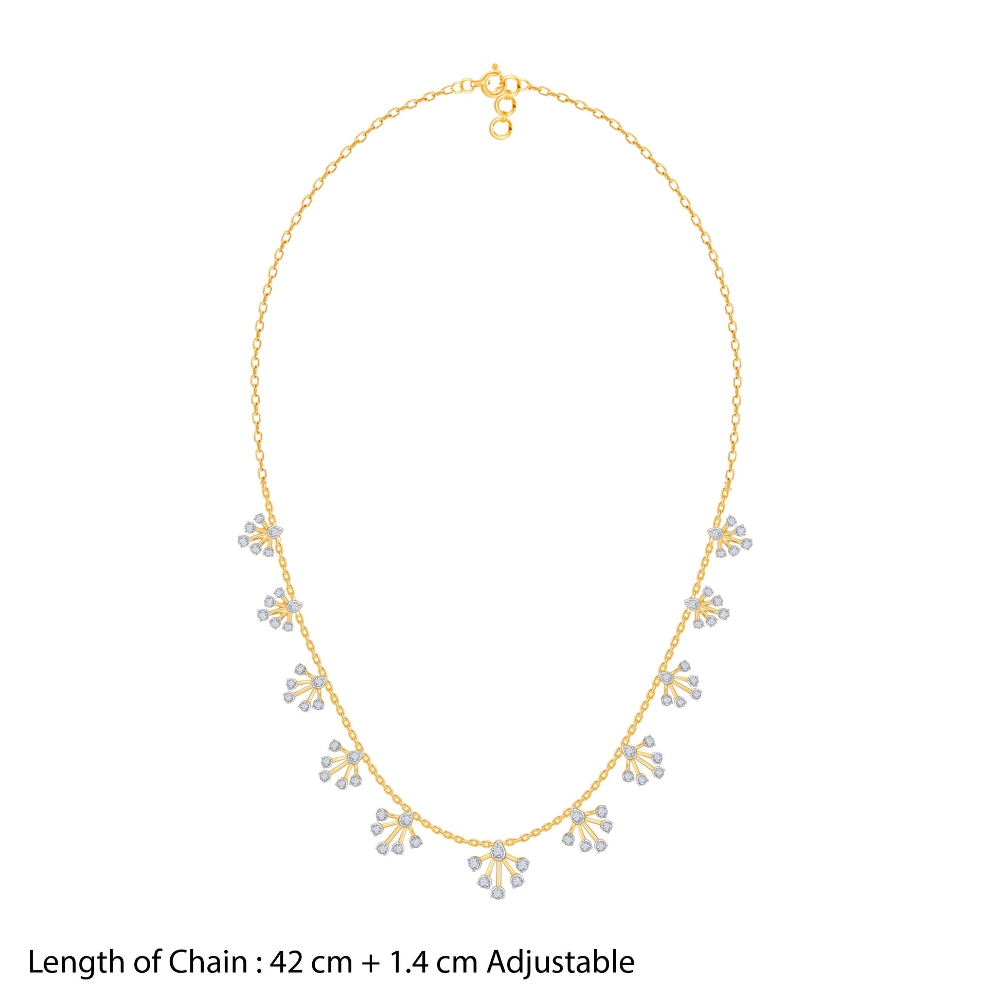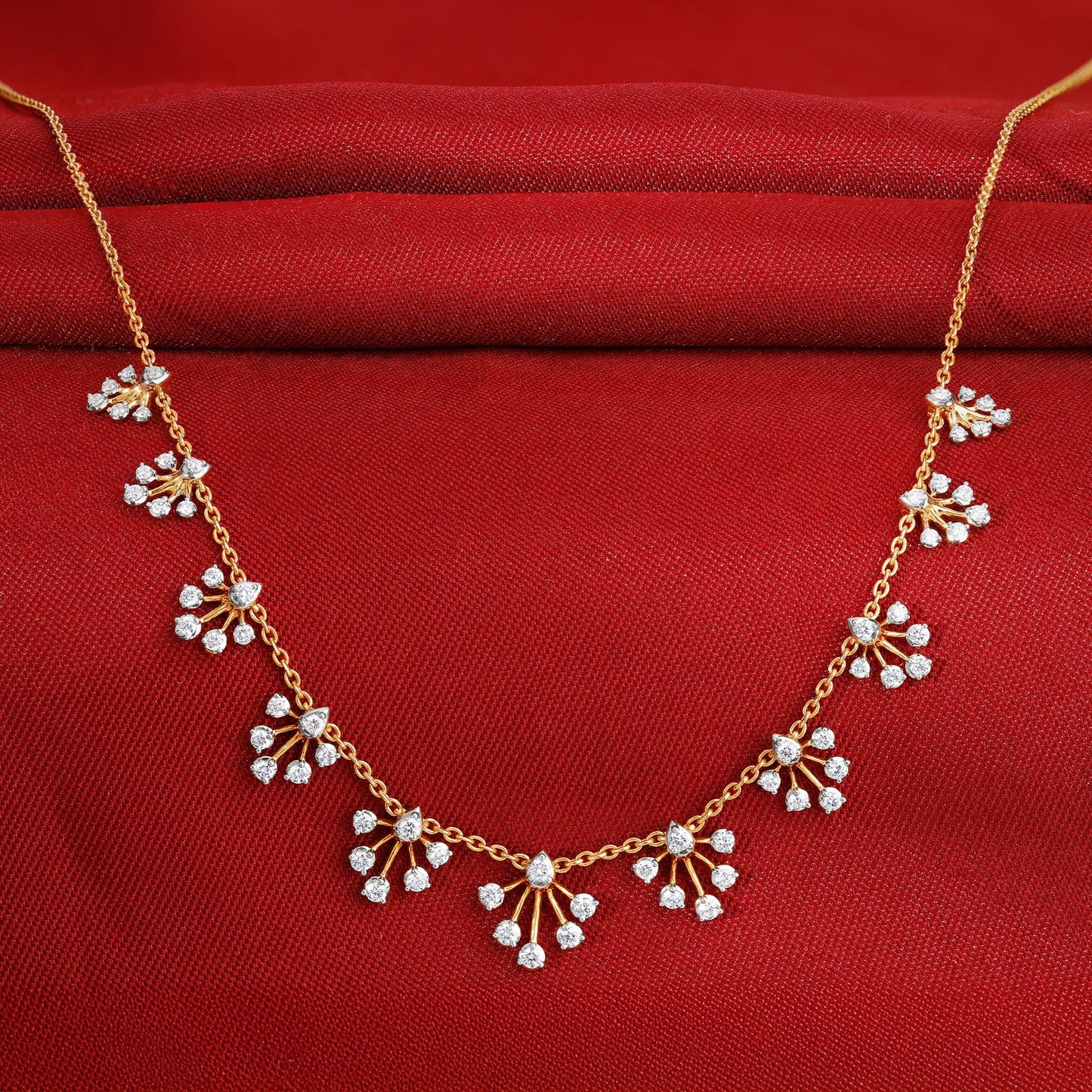 This pure gold necklace for women features a sun rays motif along the entire chain. Each ray is beautifully studded with lab grown diamonds.