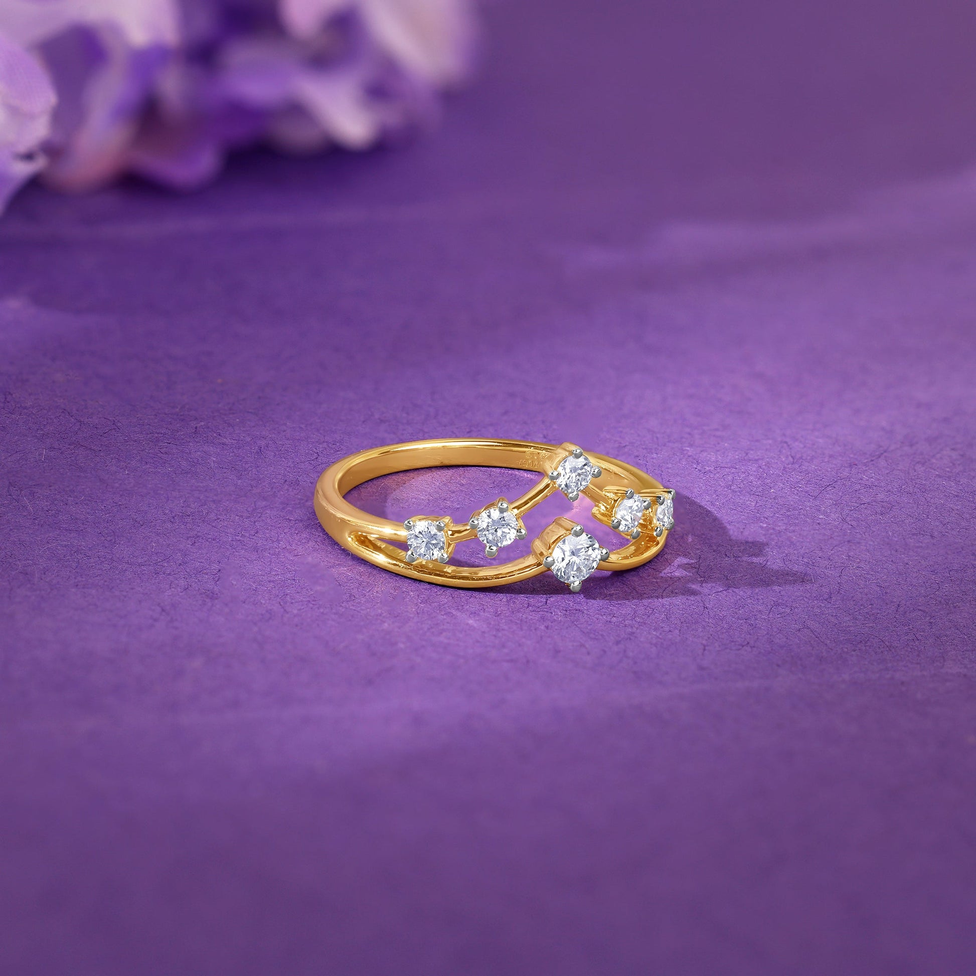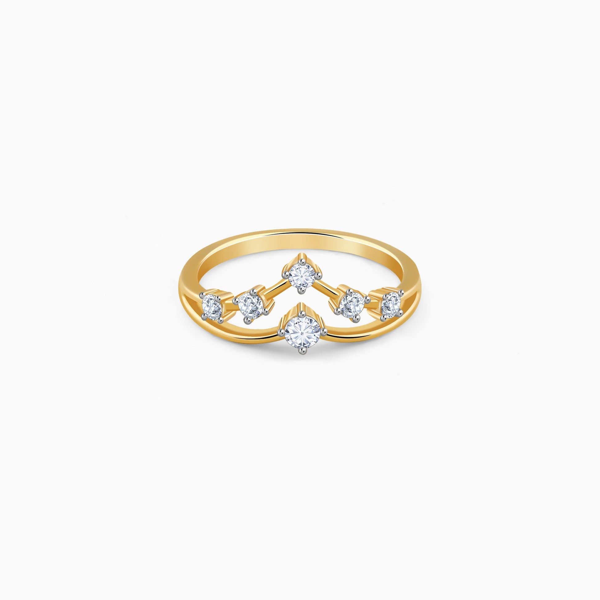 This gold ring for women features a dual layer chevron design set with brilliant-cut lab grown diamonds.