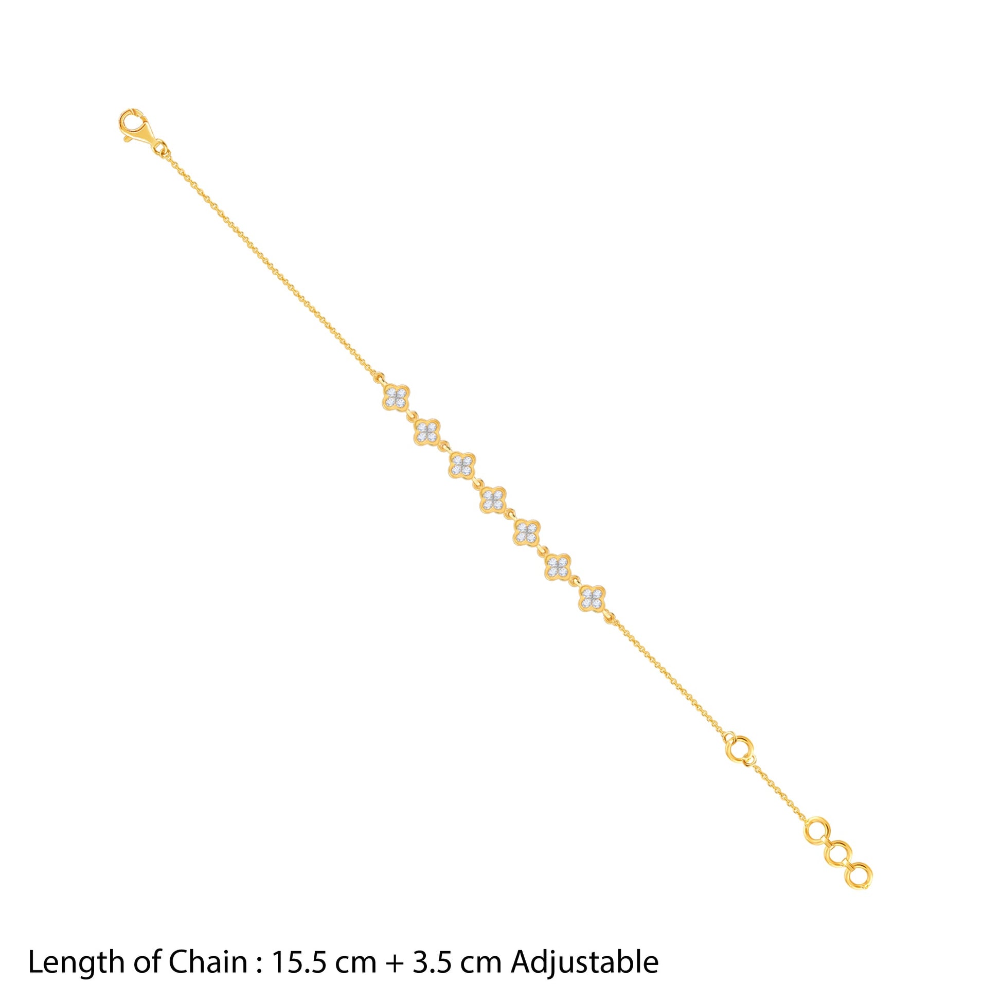 This pure gold bracelet for women features a series of clover designs studded with lab grown diamonds.