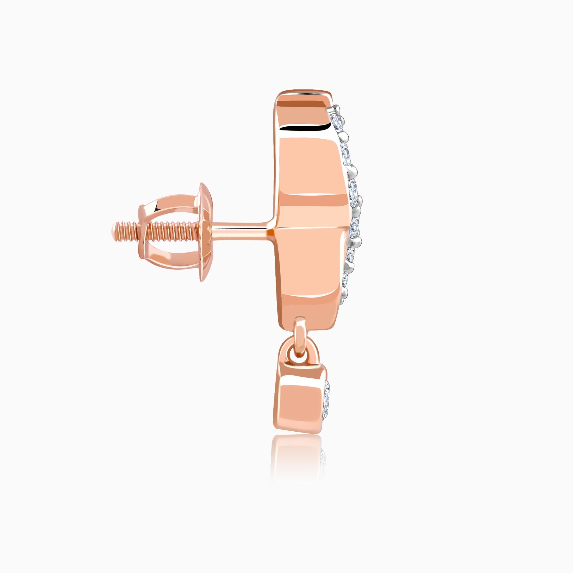 These pure gold earrings for women feature a swirl design with a circular dangling drop studded with lab grown diamonds.