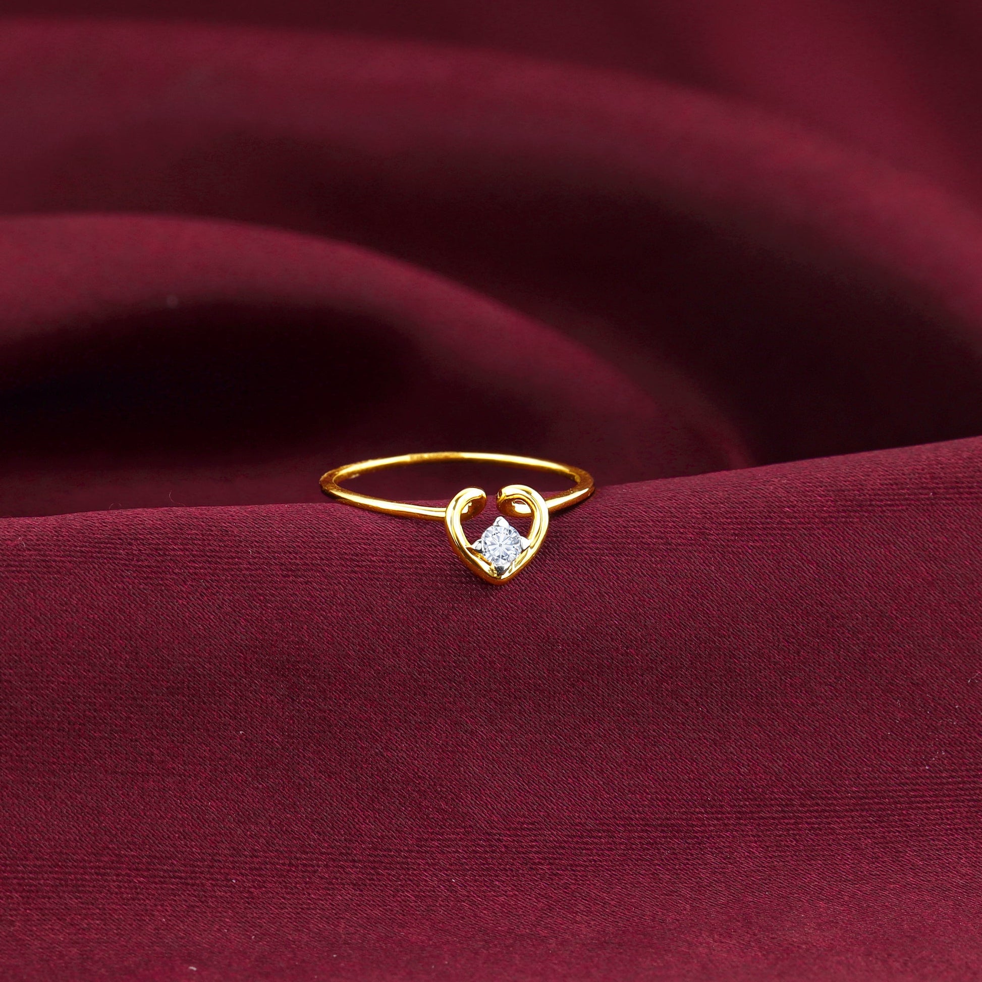 This gold ring has a heart motif with lab-grown diamonds set in the centre.