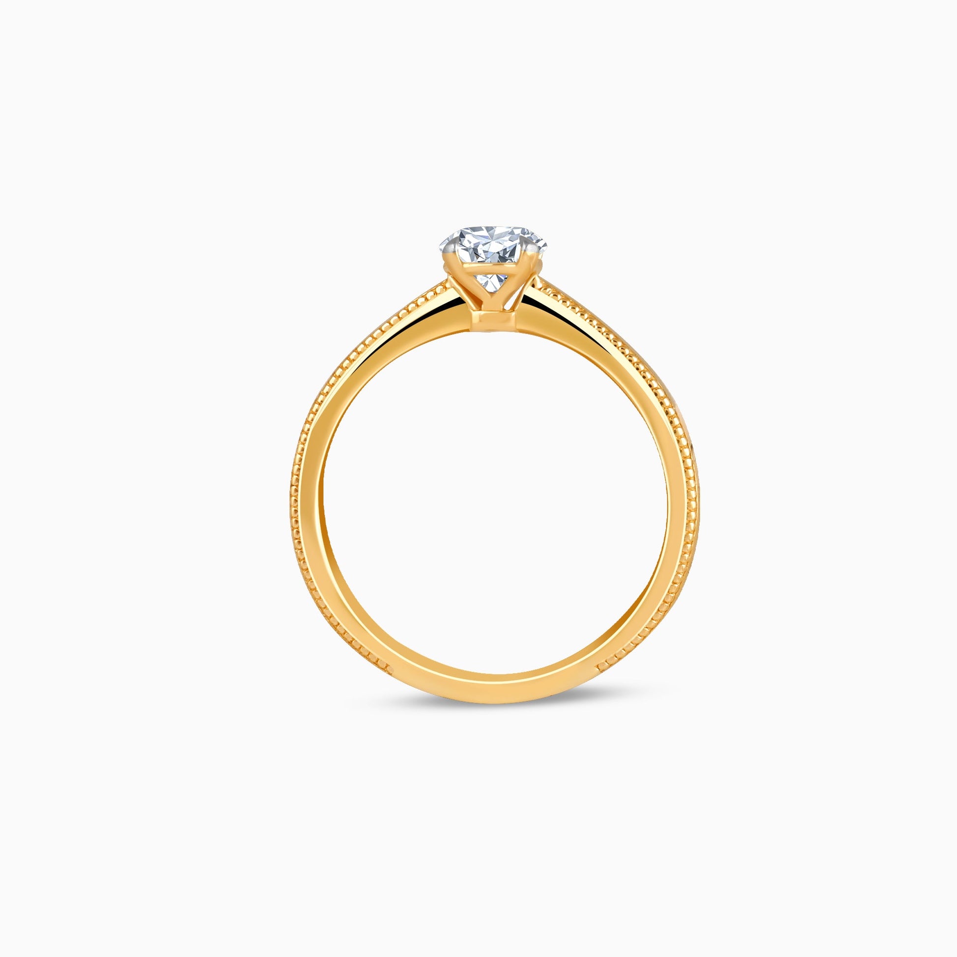 This pure gold ring for women features a refined tapered band detailed with milgrain edges, leading to a luminous round lab grown diamond solitaire. The clean lines offer vintage charm letting the diamond take center stage.