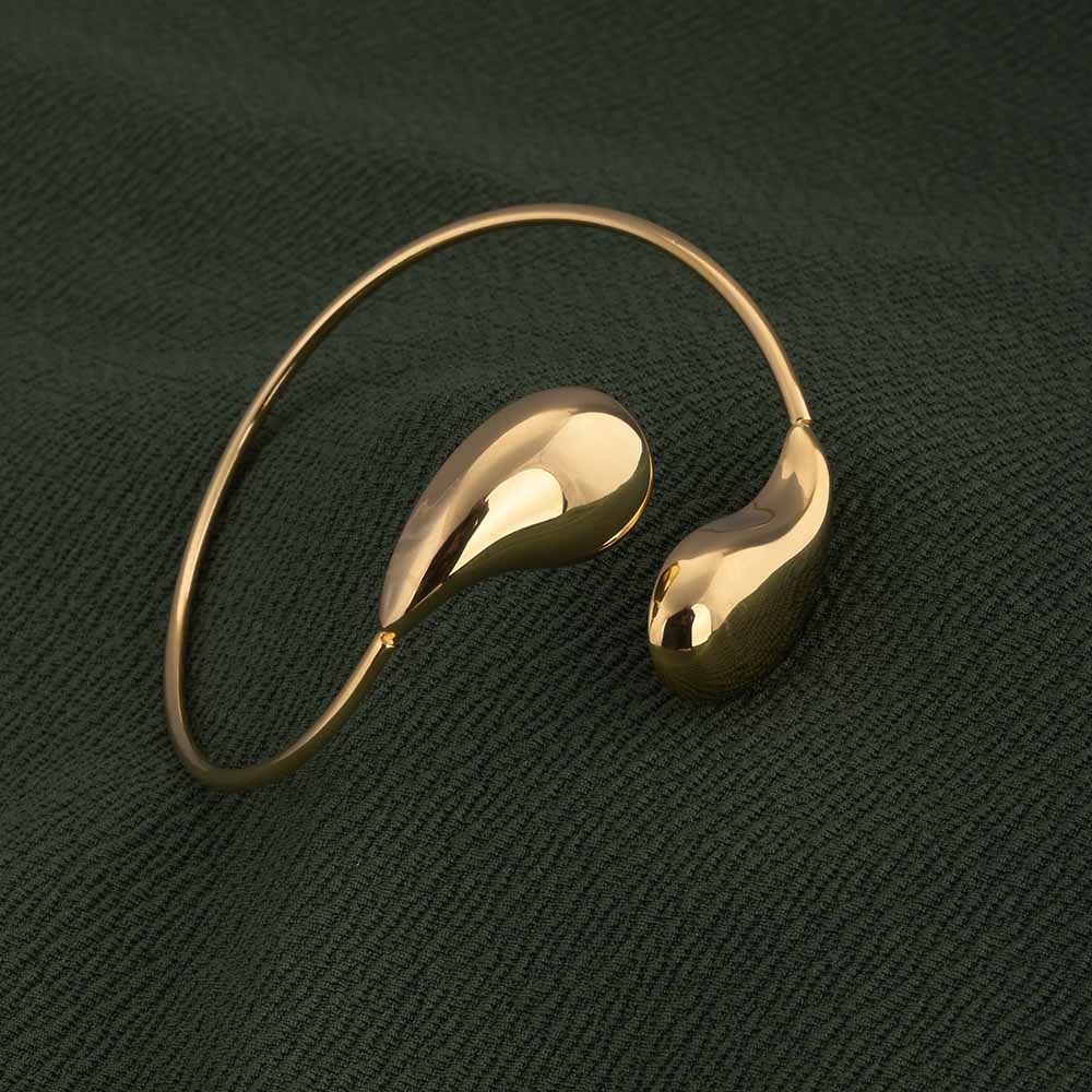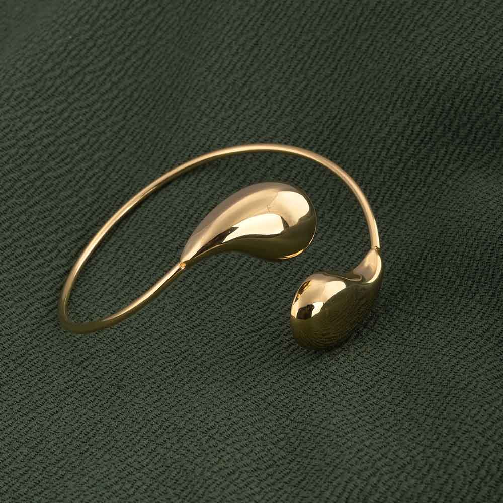The Gold Teardrop Cuff Bracelet for women is a sleek and modern accessory that adds understated elegance to any look. Crafted in 18k gold tone stainless steel, its sculptural teardrop design creates a graceful silhouette on the wrist. Waterproof and anti-tarnish, this cuff is versatile for both casual and formal outfits, making it a stylish statement piece that blends contemporary design with timeless charm.