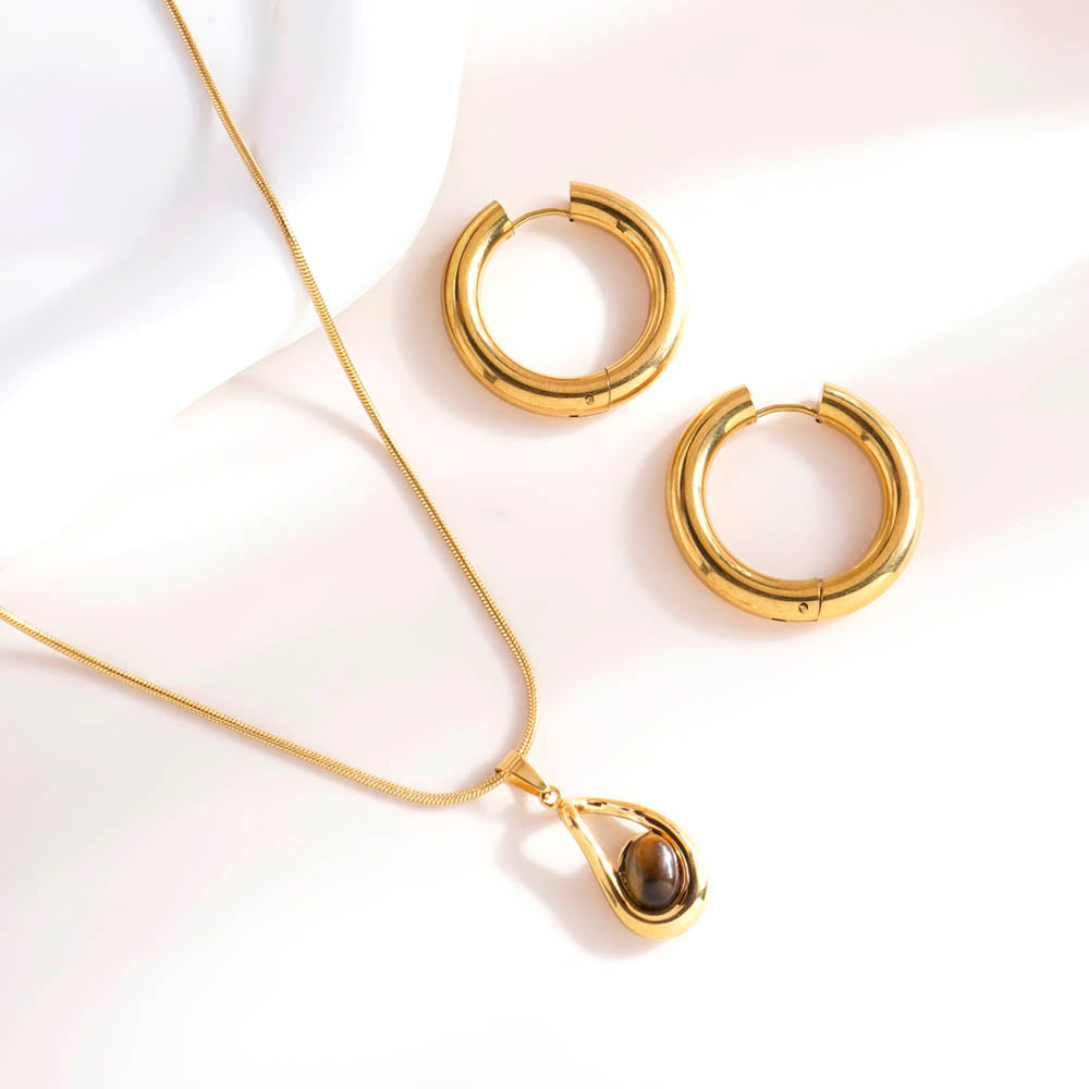 Gold Teardrop Necklace & Classic Round Hoop Earrings Combo Set