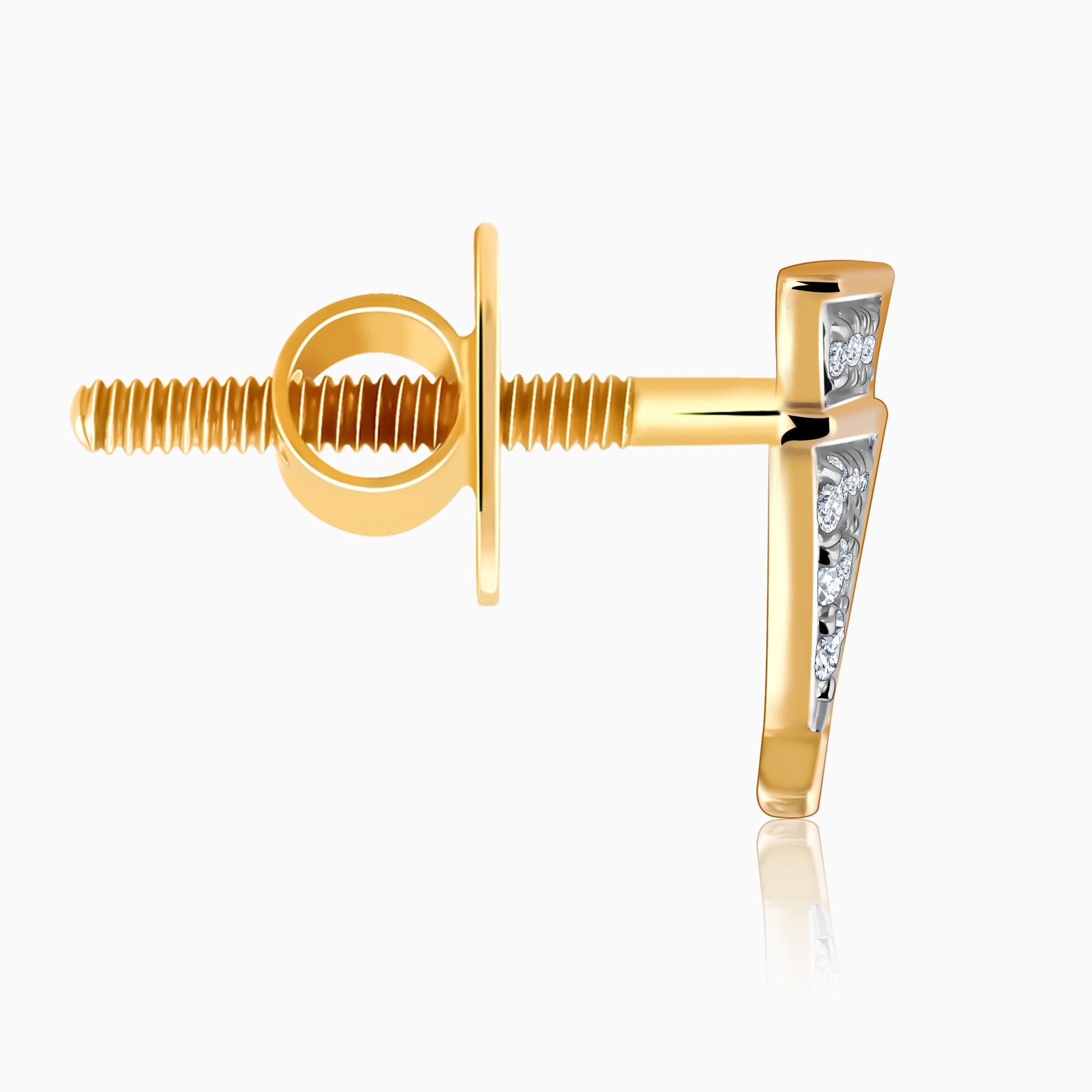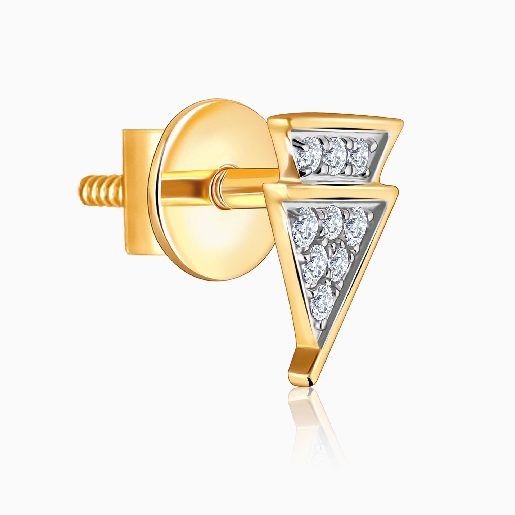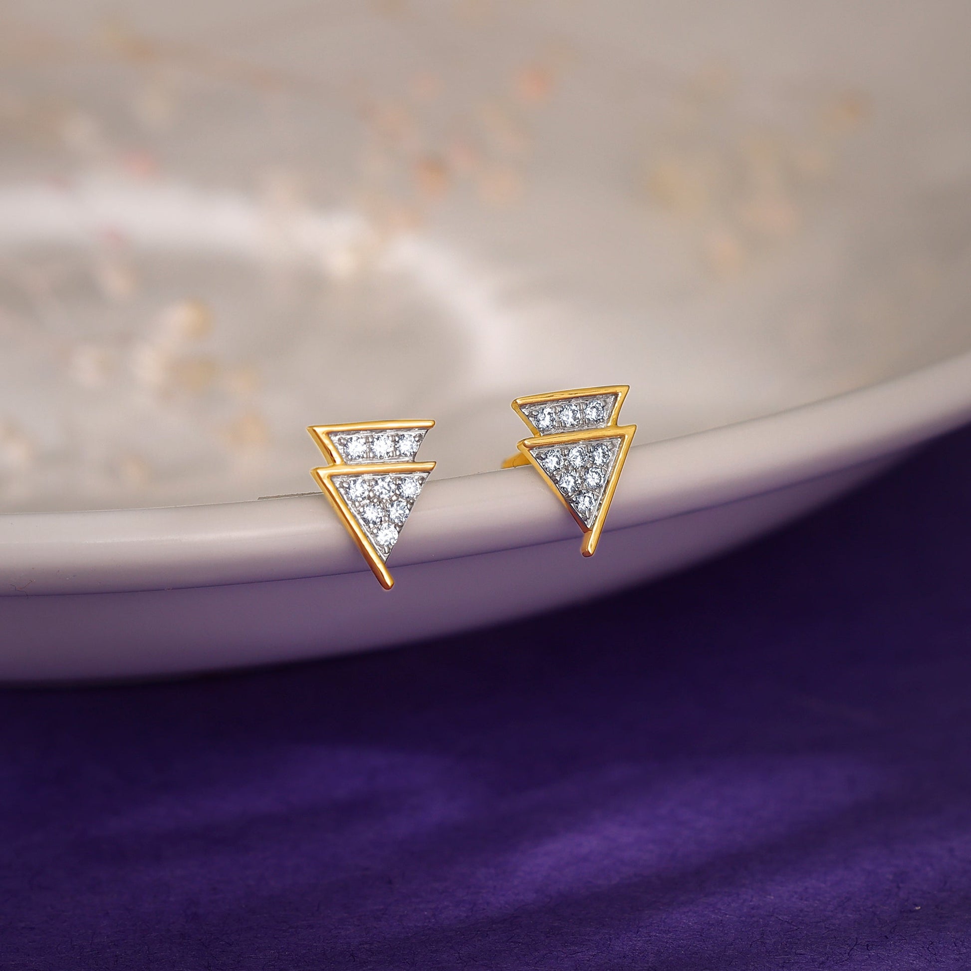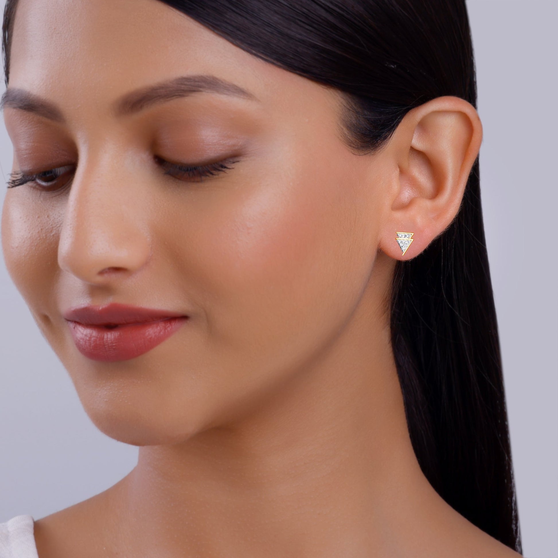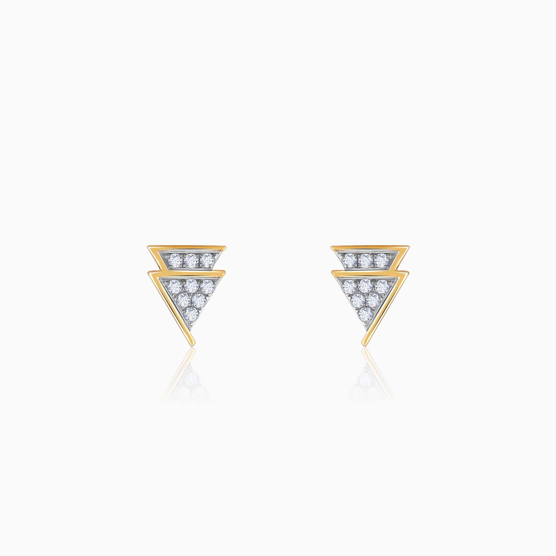 These pure gold earrings feature a geometric triangle shape, with small to medium-sized triangles set closely together to create a sparkling effect with lab-grown diamonds.