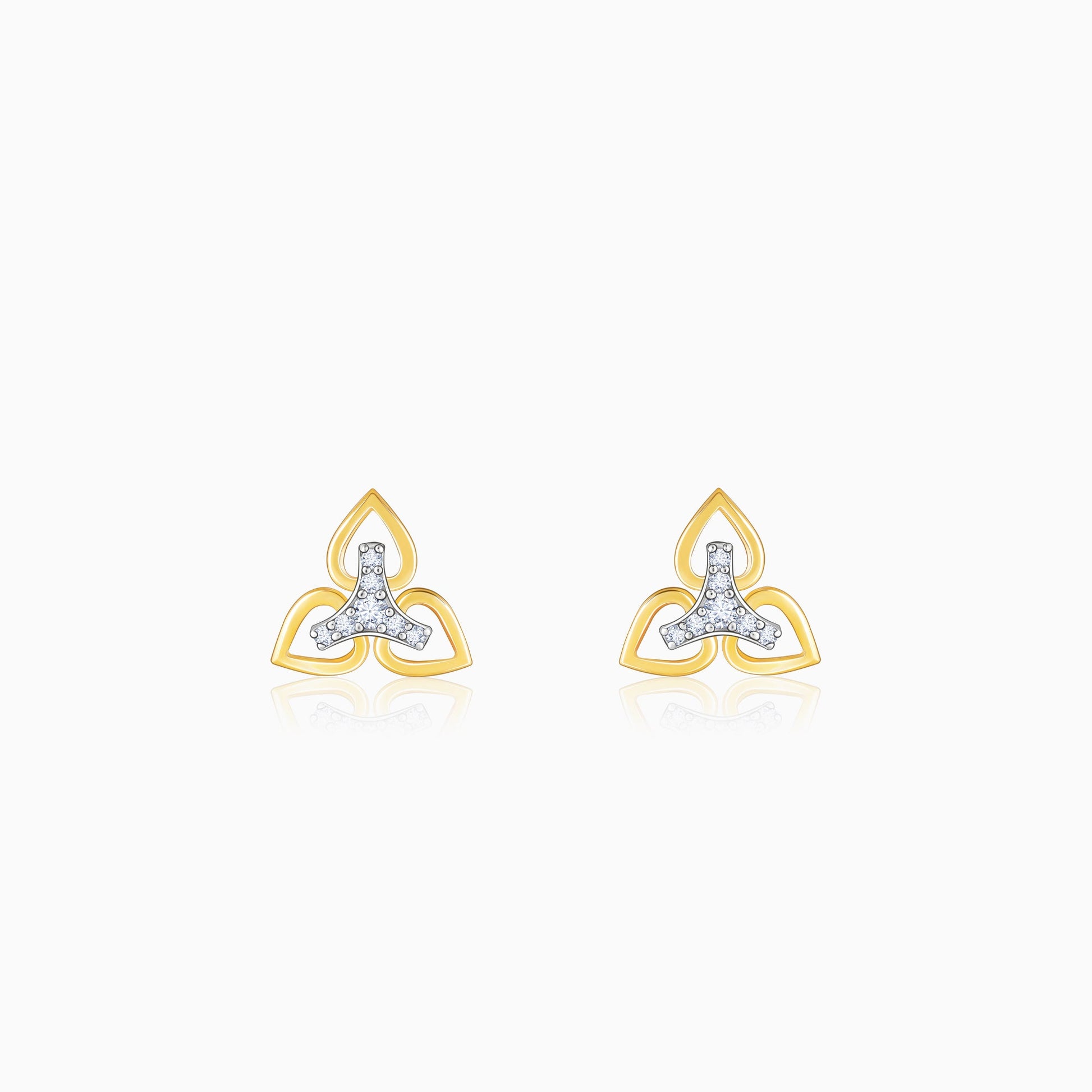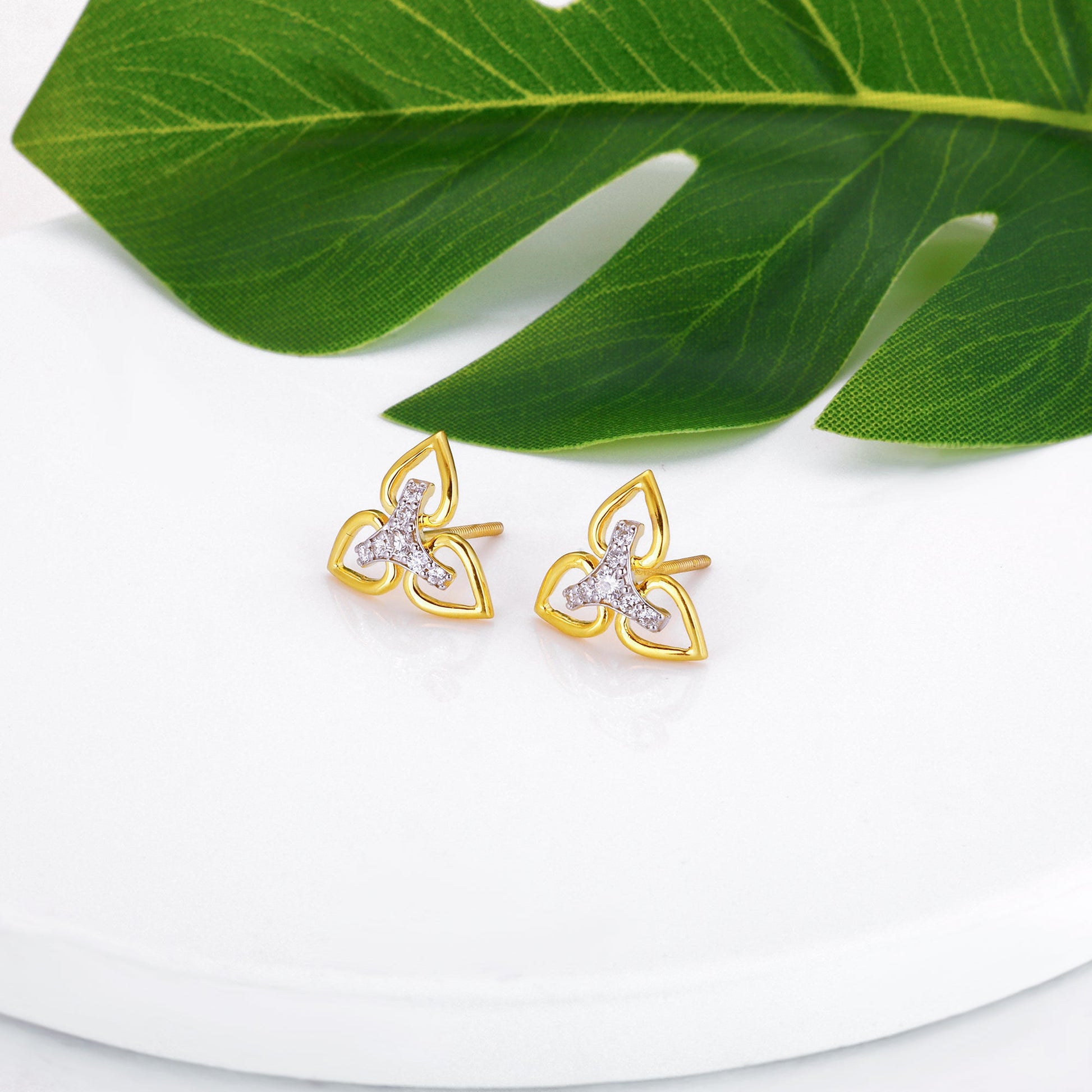 These earrings have a beautiful three-petal flower design studded with diamonds at their centre in a three-wheel spoke.