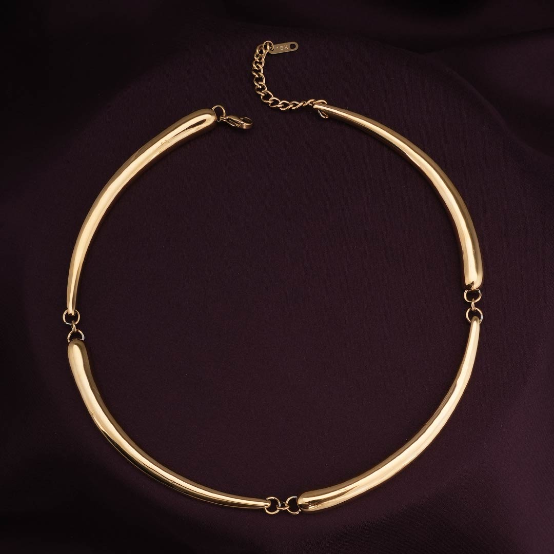 The Gold Tube Collar Necklace is a bold, statement-making jewellery piece featuring a sleek tubular design crafted in 18k gold-plated stainless steel. Its contemporary choker silhouette adds instant sophistication and modern flair to any outfit. Perfect for elevating both casual and evening ensembles, this necklace brings a refined, fashion-forward edge to your jewellery collection.