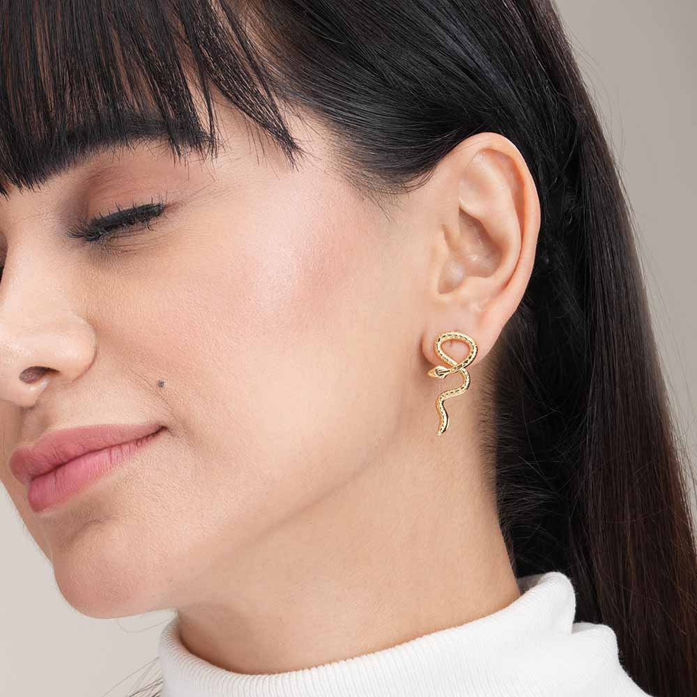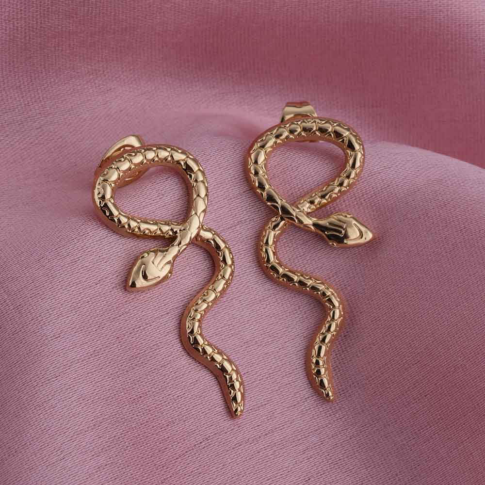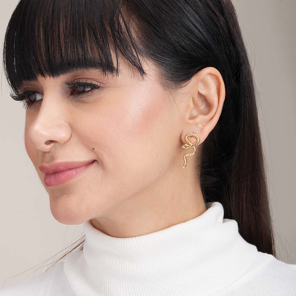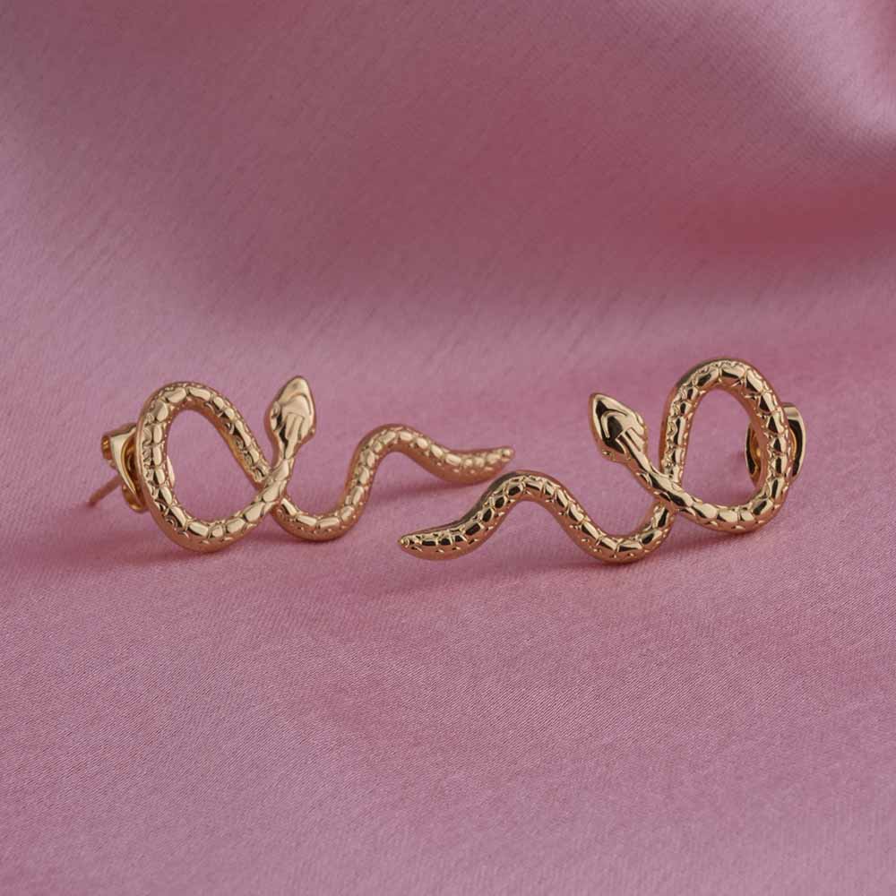 Gold Twisted Snake Stud Earrings