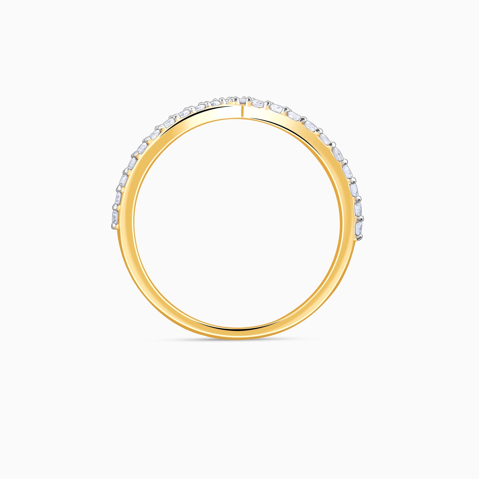 This pure gold ring features a V-shaped design with a row of lab grown diamonds on each side.