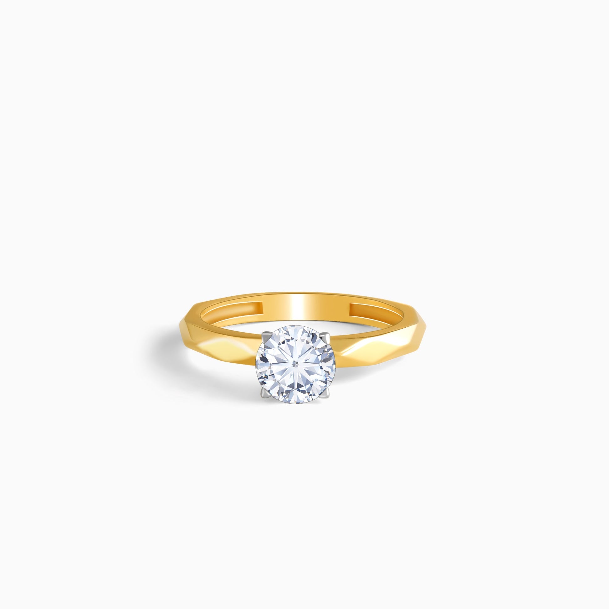 This gold ring for women features a solid solitaire lab grown diamond at the centre. The hexagonal band adds modern drama.