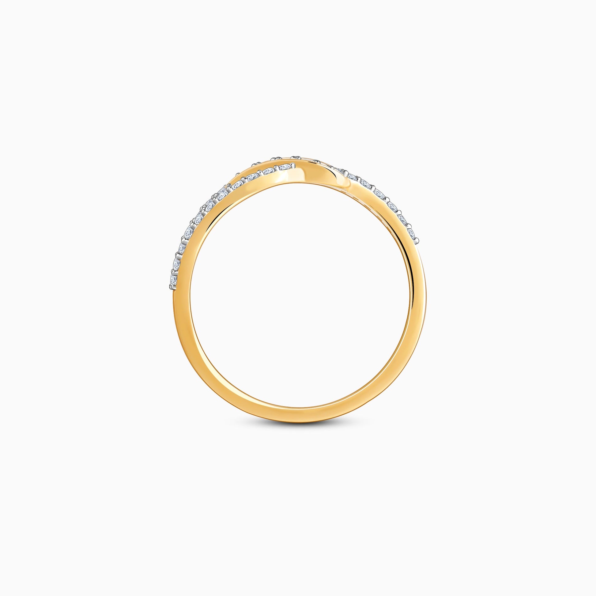This pure gold ring for women features an intertwined wavy design fully paved with shimmering lab grown diamonds.