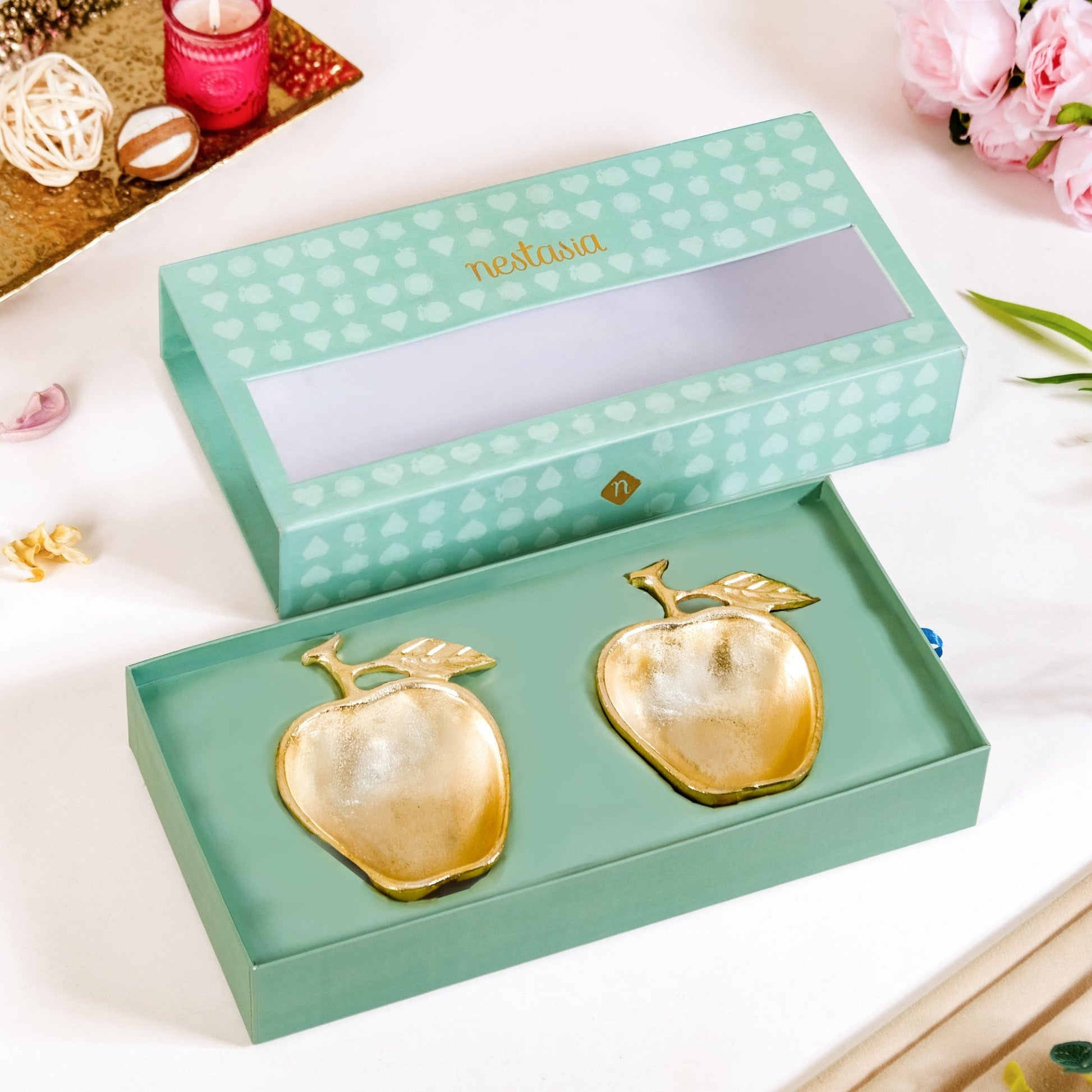Add a playful yet elegant touch to your space with this apple-shaped metal trinket bowl, thoughtfully crafted to blend charm and functionality. The bowls come in a beautifully designed gift box.