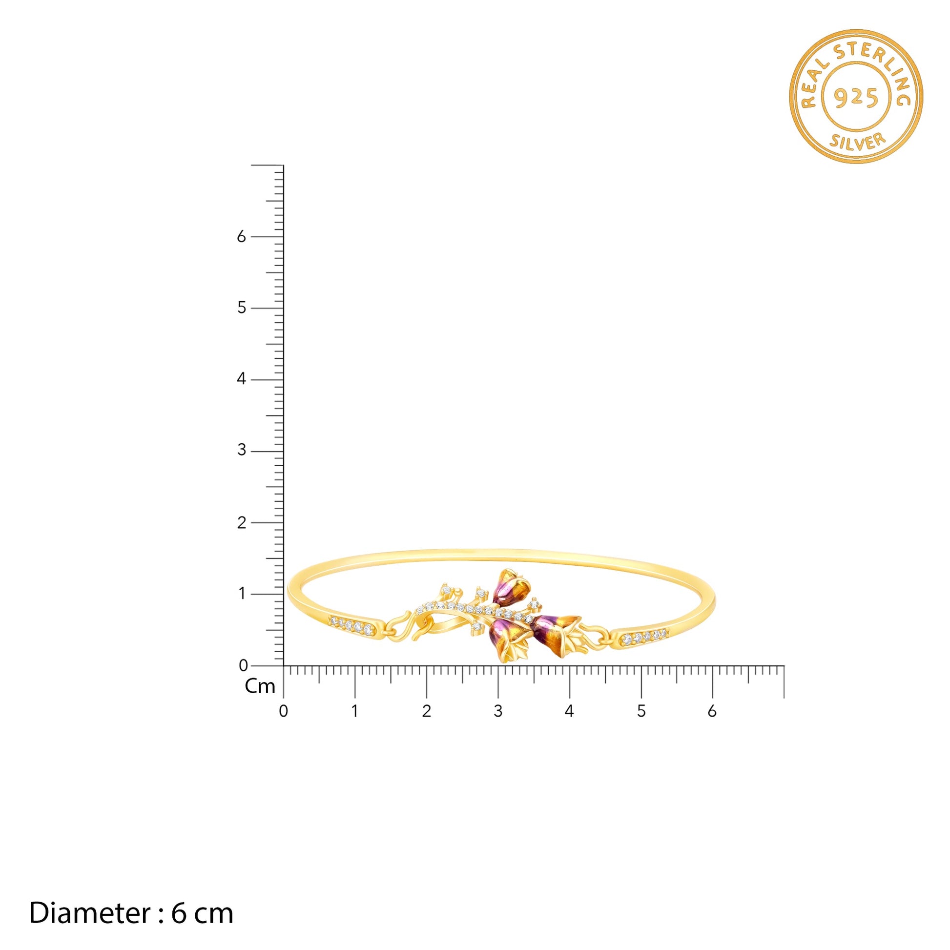 This golden bracelet features bell mallow bud sporting zircons with enamel detailing.