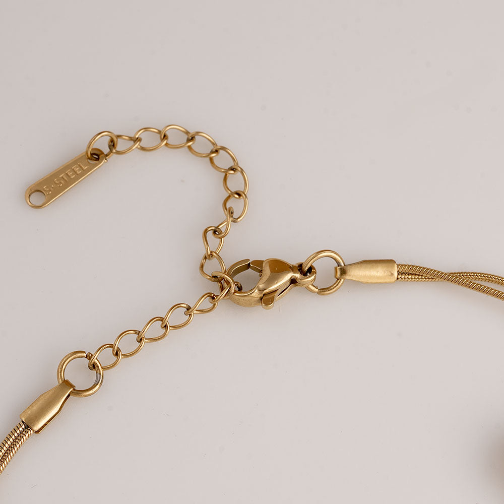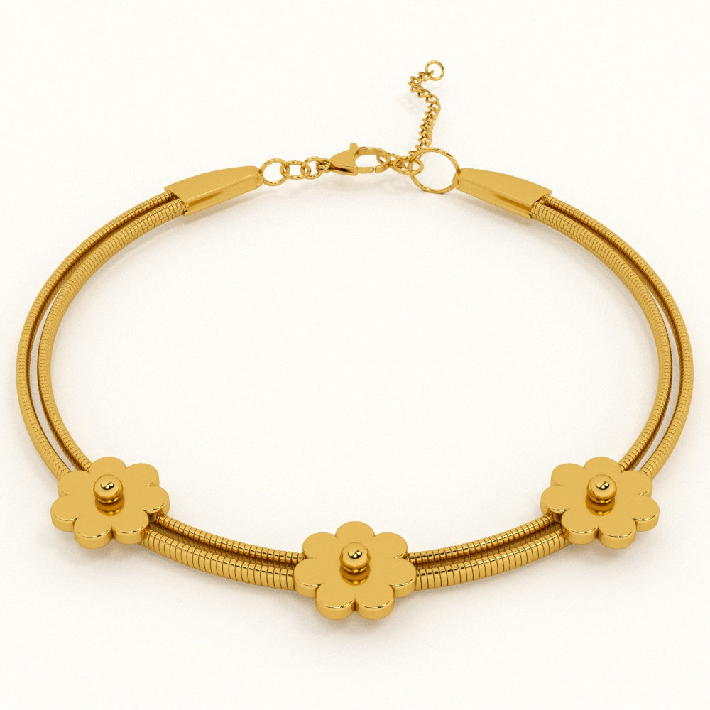 Bring a touch of delicate elegance to your look with the Golden Blossom layered strand bracelet. Crafted in stainless steel with a radiant 18k gold-tone finish, its layered design offers subtle movement and shimmer. Perfect for layering with other bracelets or wearing alone, this bracelet adds a refined, contemporary charm to both casual and formal ensembles.