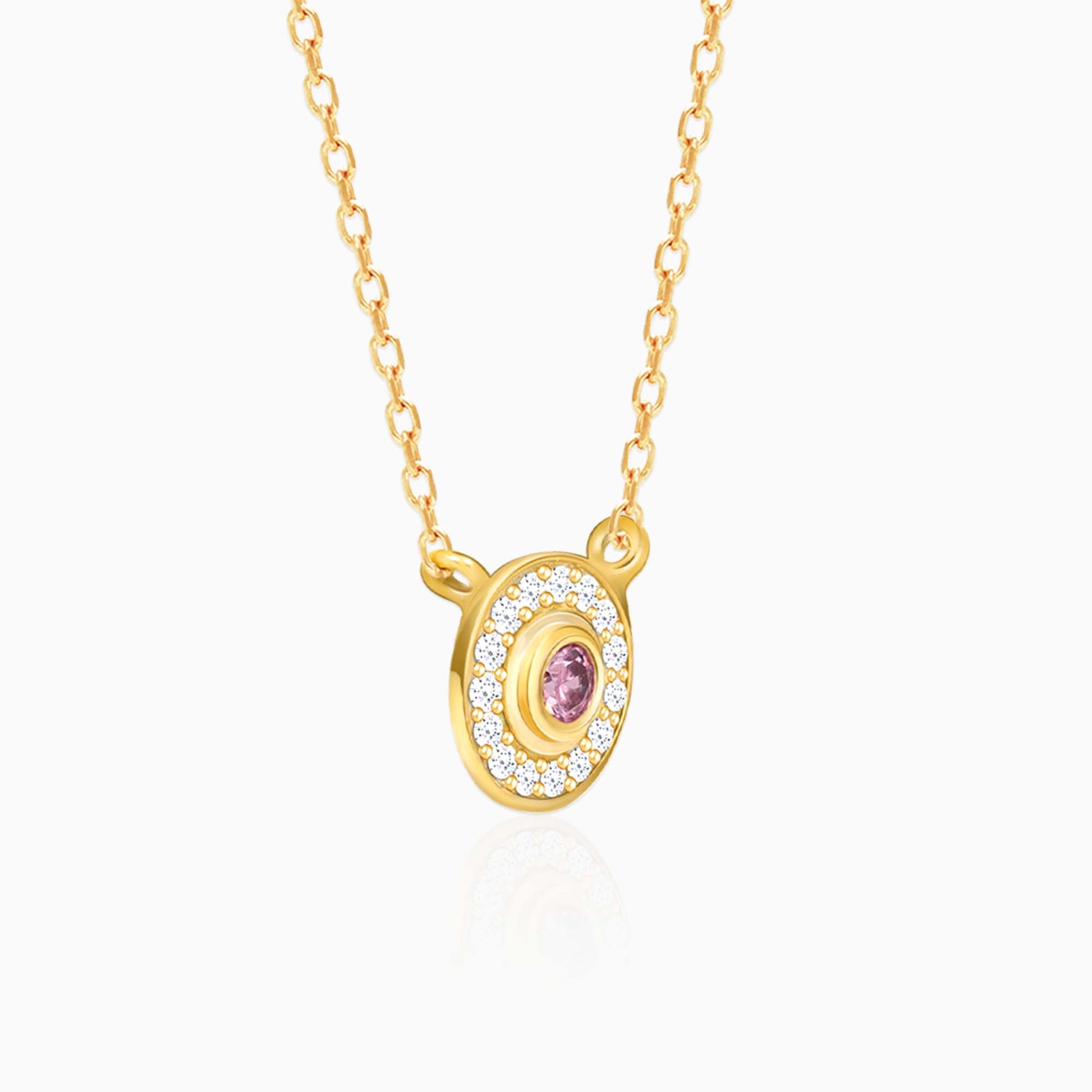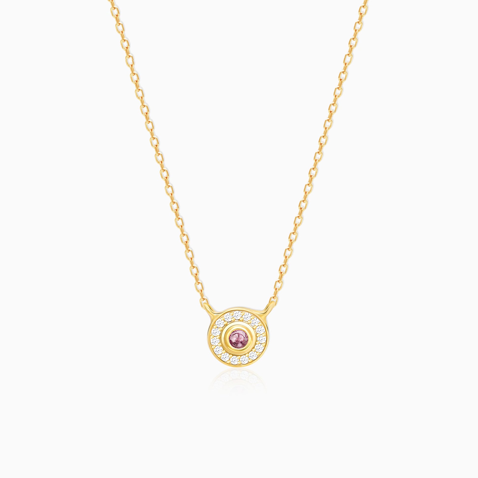 The Golden Circle Of Life Necklace is handcrafted with love only for YOU! Designed with a pastel coloured stone in the centre and surrounded by zircons.