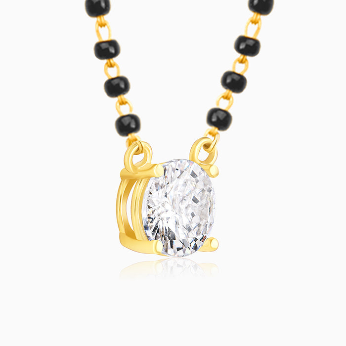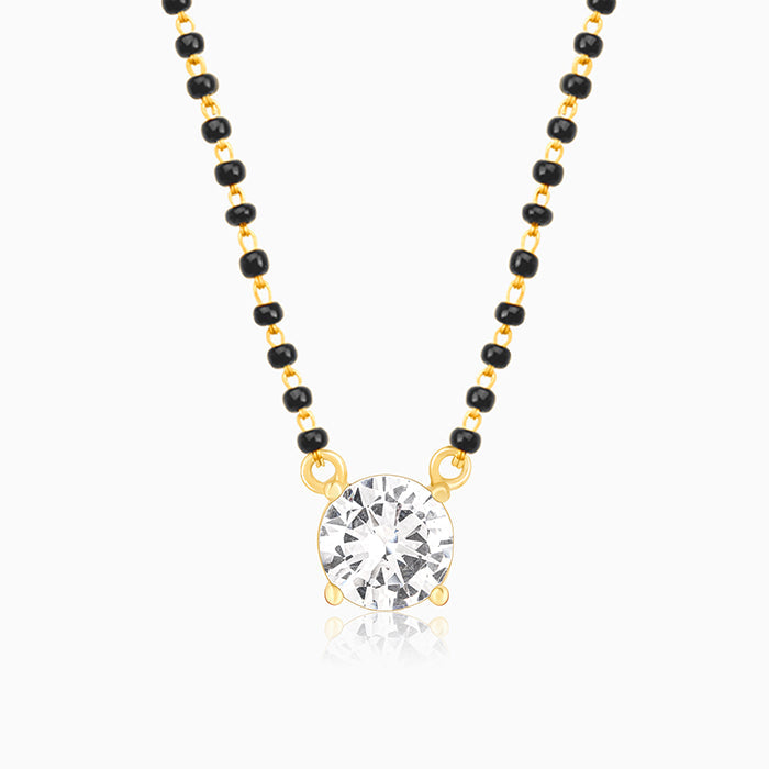 This gold-plated mangalsutra has a big single-stone zircon placed at the centre with a black beaded chain.