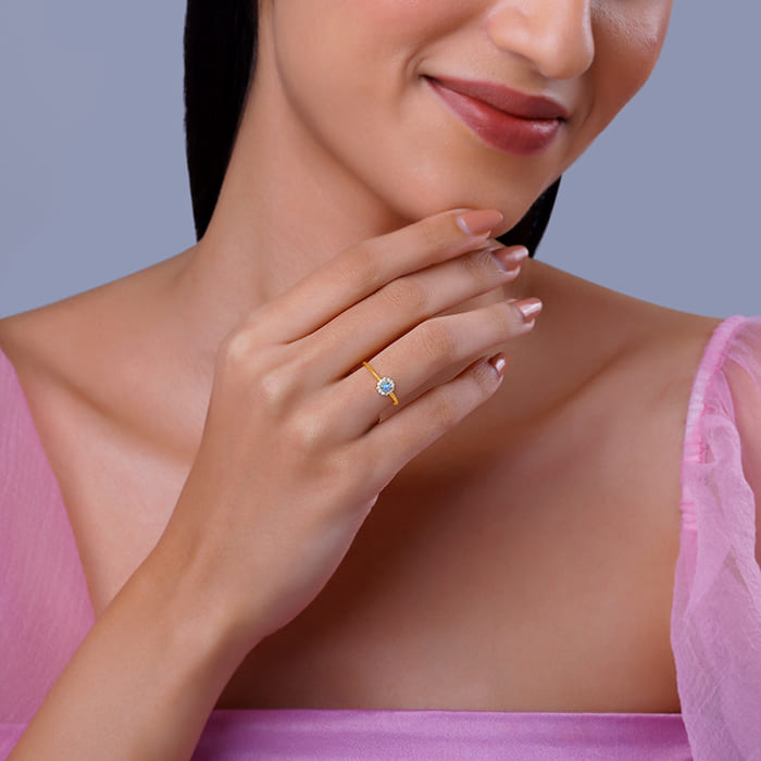 This golden ring for women features a circular motif with an opal stone at the centre and zircon studded around. Let the stunning elegance of Trendy Freak Sky High inspire you to chase every dream and celebrate every milestone.