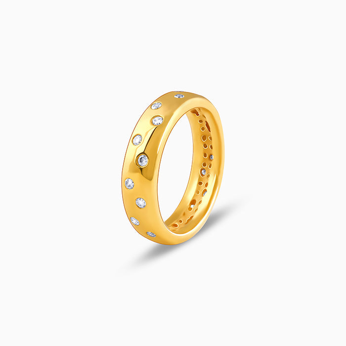 This gold plated ring for women showcases evenly placed, flush-set zircons.