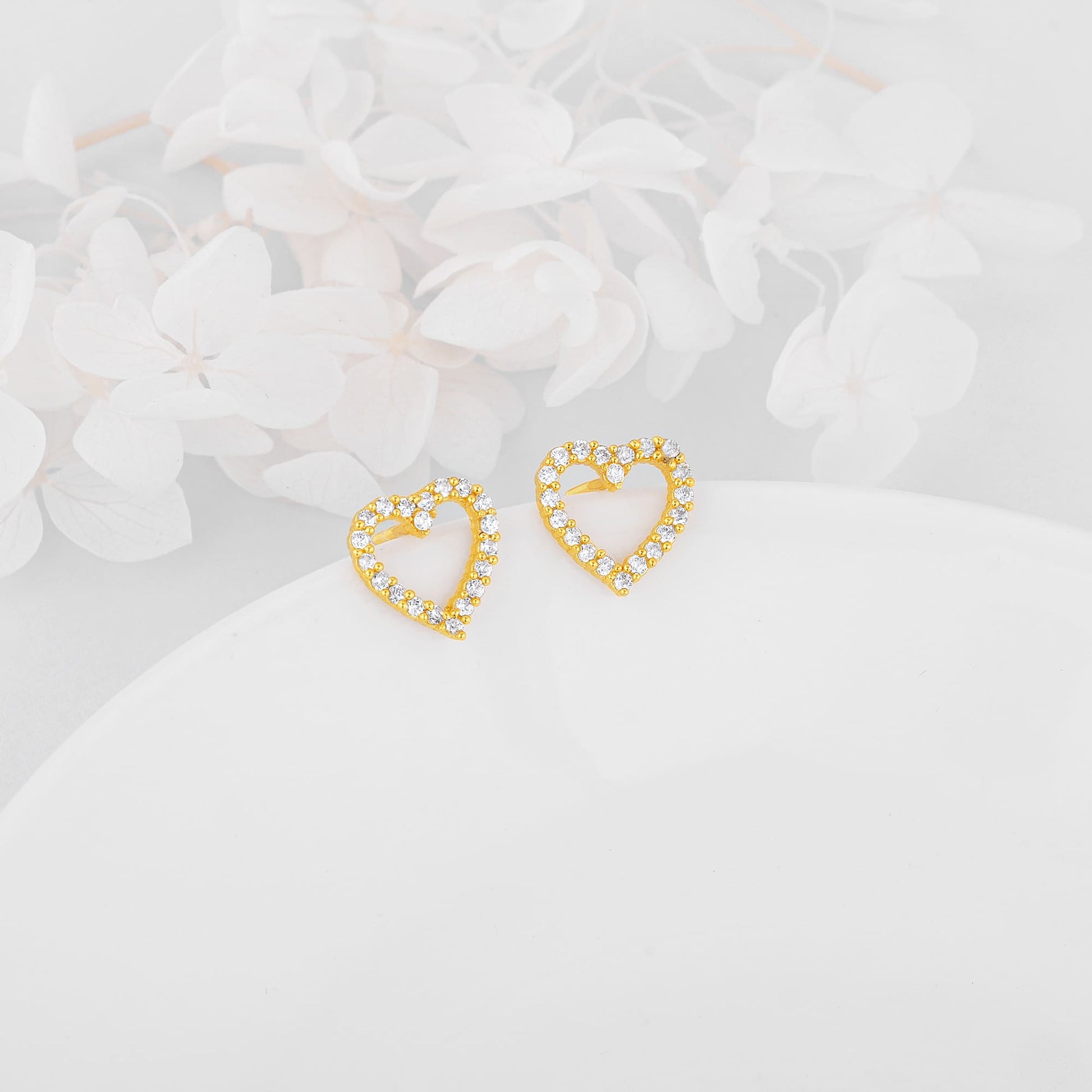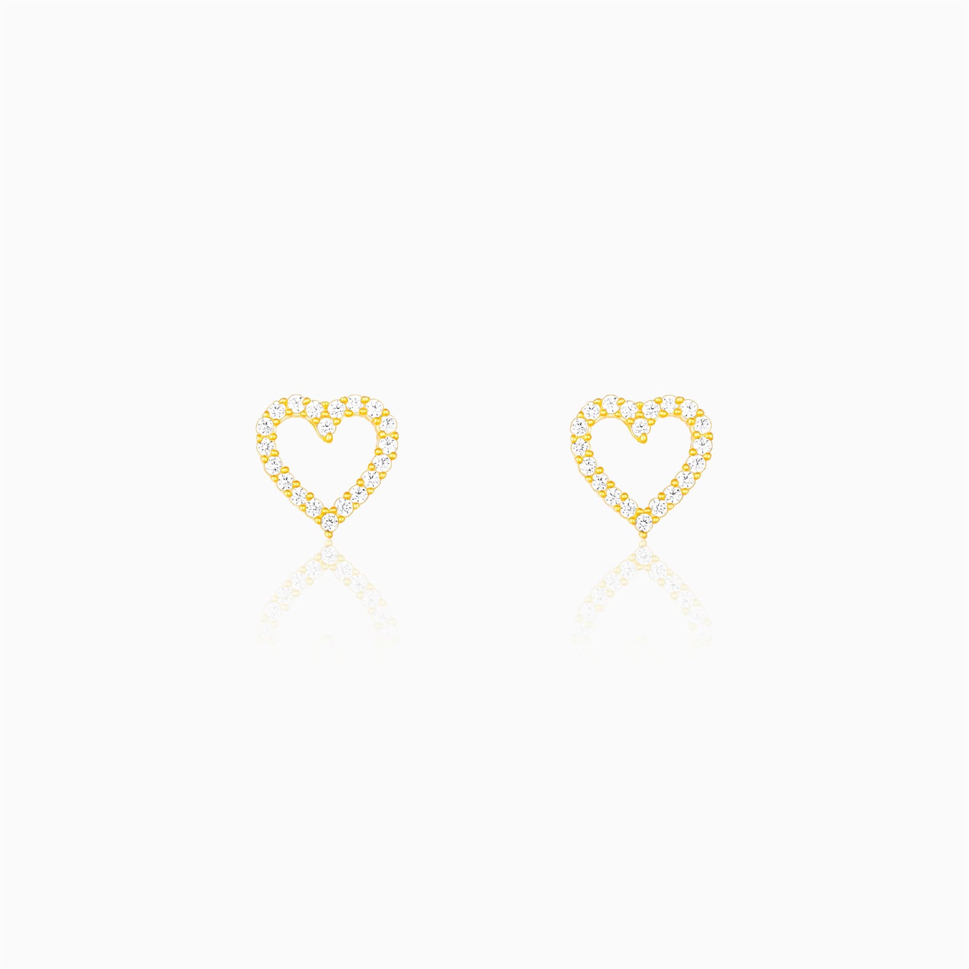These golden studs feature a heart motif studded with zircons.