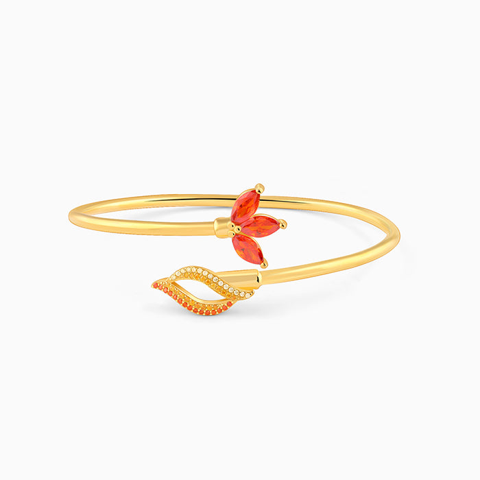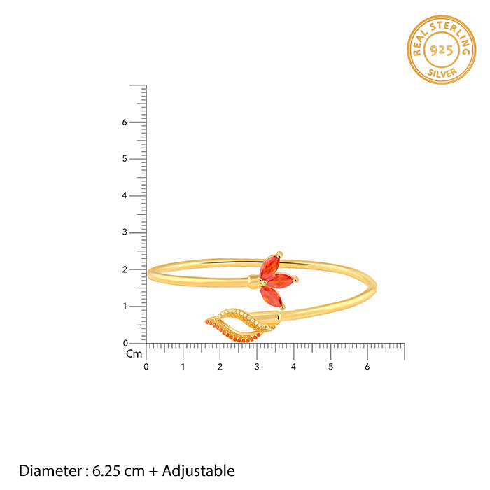This gold plated cuff bracelet for women has an adjustable design. One edge features a flower studded with colourful zircons. The other edge showcases a leaf motif, also set with colourful zircons. Designed in Italy. Inspired by India. Embrace the goddess within with the Shakti Collection by Trendy Freak x Anna Giulia Chicco.