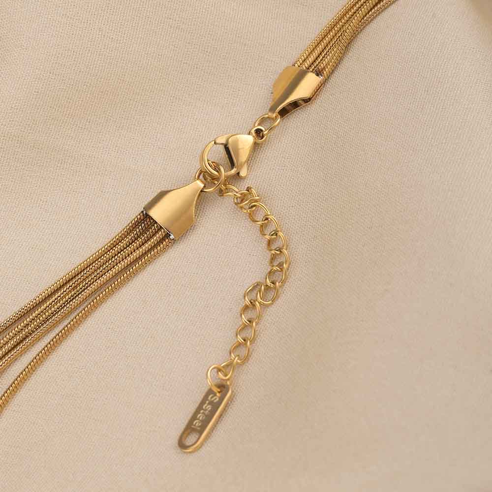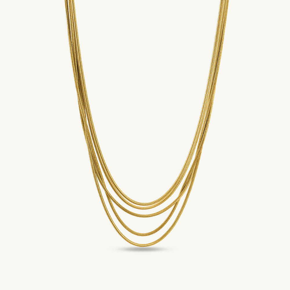 This exquisite 18K gold necklace embodies timeless sophistication and elegance. Crafted from high-quality 18-karat gold, it features a smooth, polished finish that catches and reflects light beautifully. The necklace's design is both classic and versatile, making it a perfect accessory for any occasion, whether it's a formal event or a casual outing.