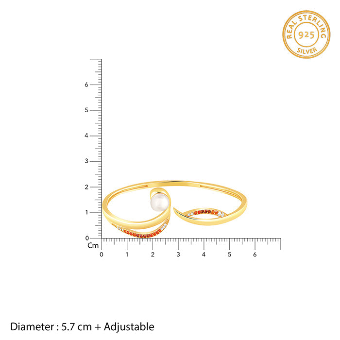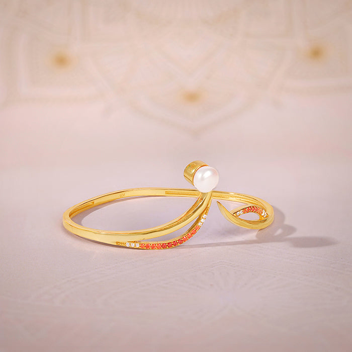 This gold plated bangle bracelet for women features a wavy design. The wave is studded with coloured zircons, zircons and a pearl at the centre. Designed in Italy. Inspired by India. Embrace the goddess within with the Shakti Collection by Trendy Freak x Anna Giulia Chicco.