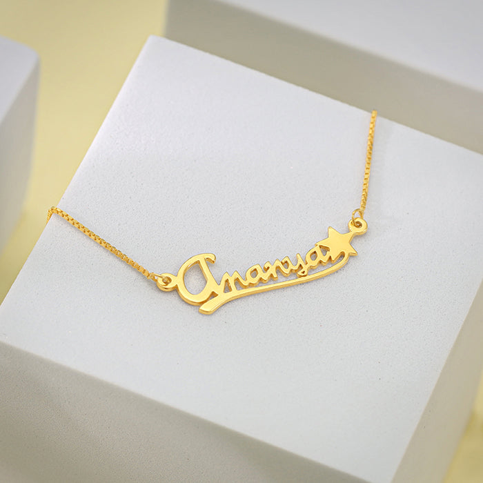 This personalised golden jewellery features a star motif at the end of the name you choose to personalise.