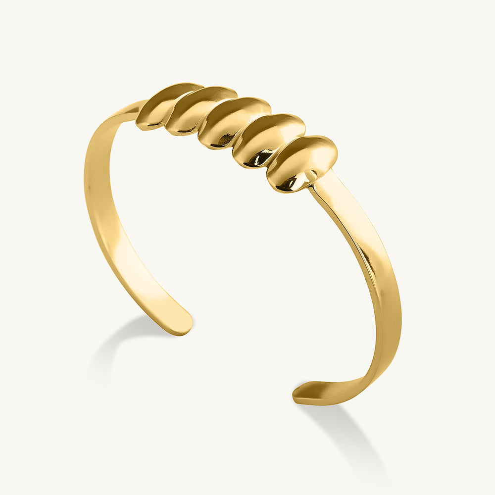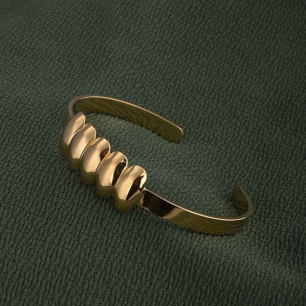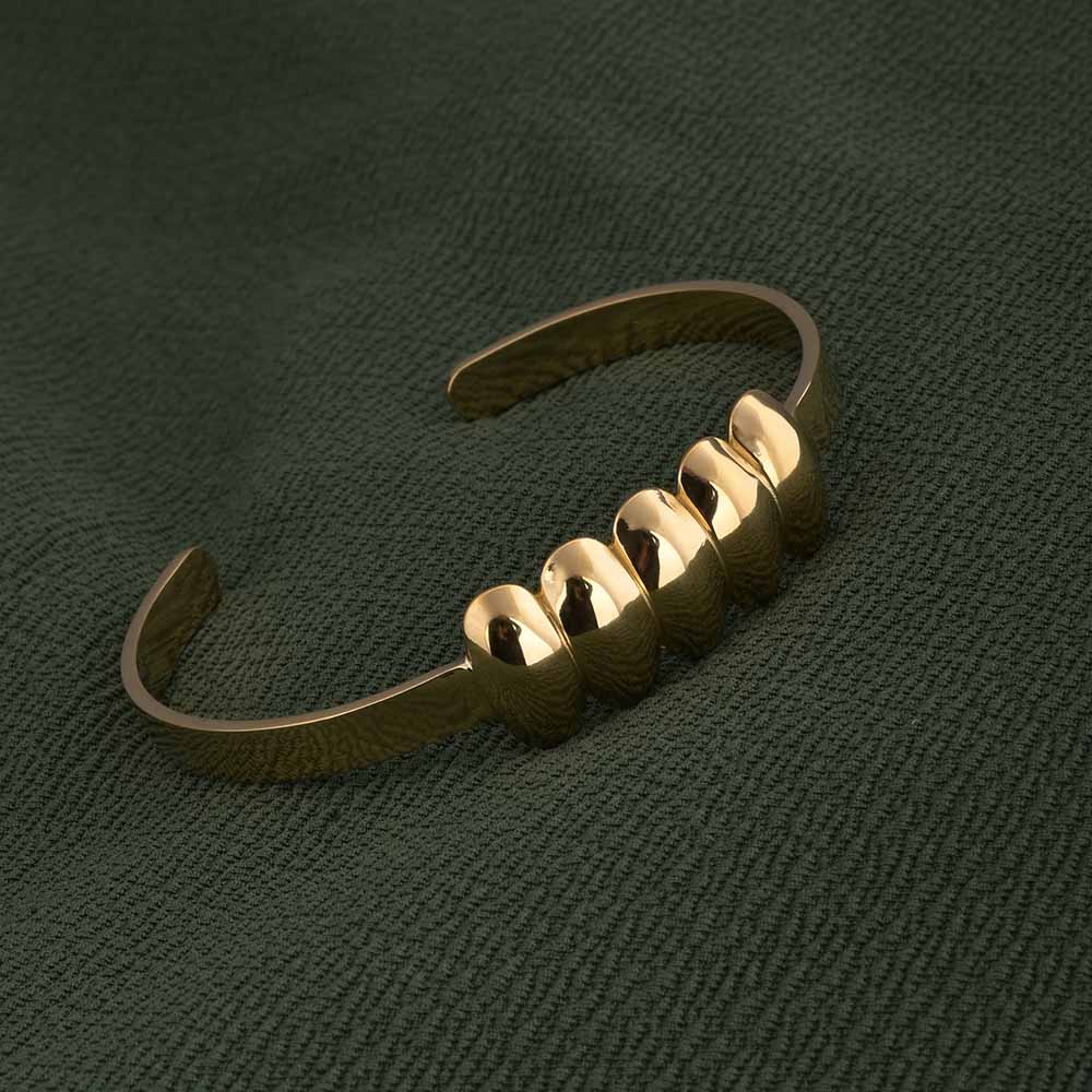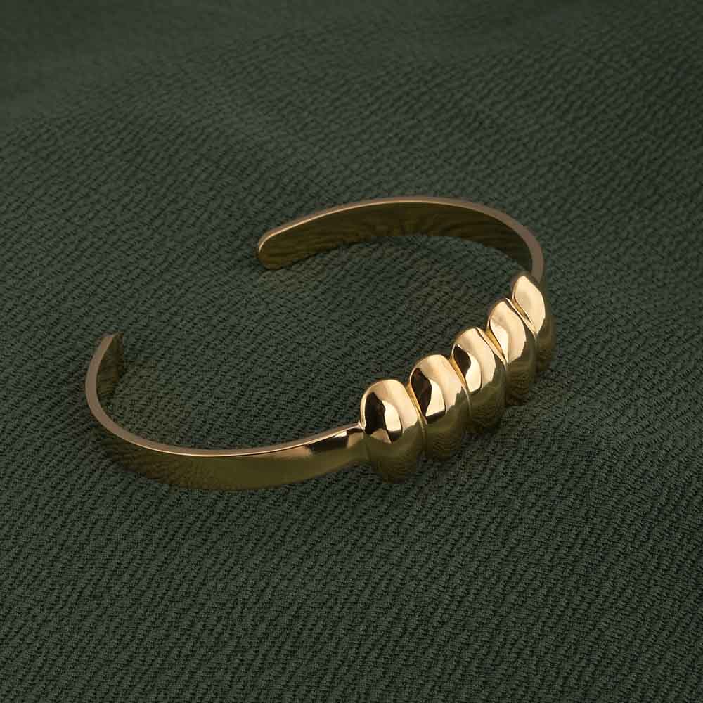 The Golden Ribbed Kada Bracelet for women is a timeless blend of traditional charm and modern minimalism. Its ribbed texture and radiant 18k gold tone plating create a luxurious statement that feels bold yet versatile. Designed to be waterproof and anti-tarnish, this cuff is perfect for everyday wear or occasion dressing, adding effortless sophistication and a touch of heritage-inspired elegance to any jewellery collection.