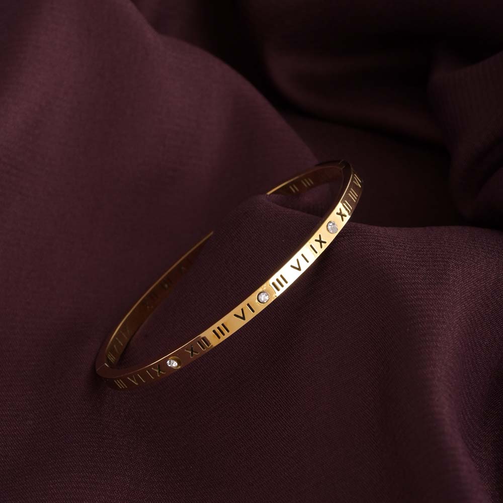 Elevate your everyday look with the timeless elegance of the Golden Roman Numeral Bracelet. The Roman numerals add a touch of history and sophistication to the design.