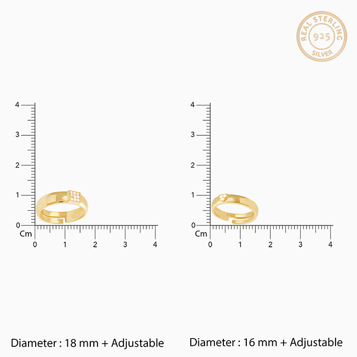 The Golden Shining Love Couple Rings have a regal design with beautifully studded zircons in the centre.