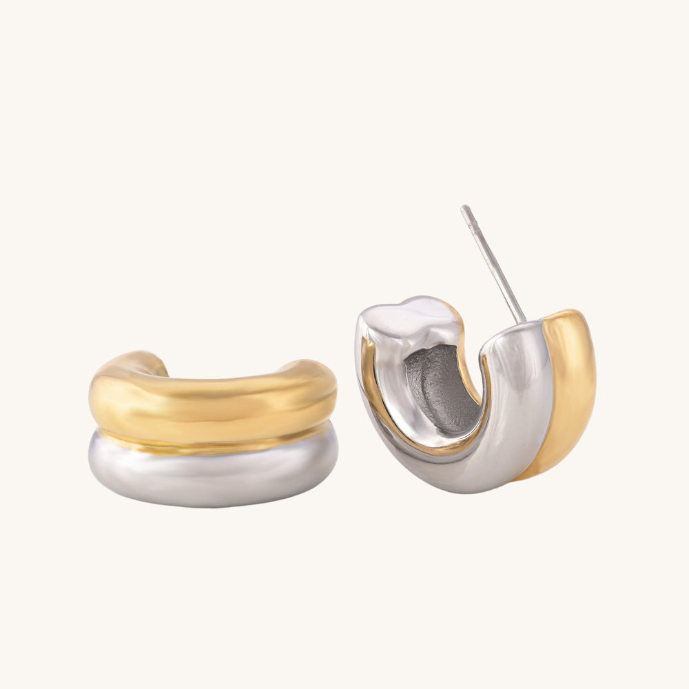 Make a bold style statement with these dual-tone gold and silver chunky hoop earrings. Perfectly balanced between edgy and elegant, these hoops add a contemporary flair to any outfit. Designed for comfort and durability, they’re ideal for both daily wear and evening occasions. Elevate your look with jewellery that effortlessly blends modernity with timeless charm.