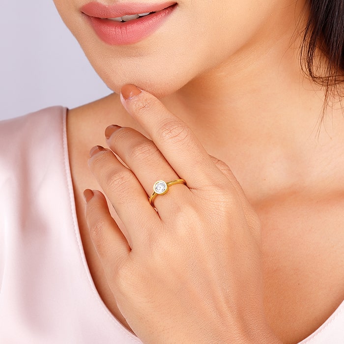 This golden ring has a circle-shaped zircon placed at the centre, making this ring look gorgeous.